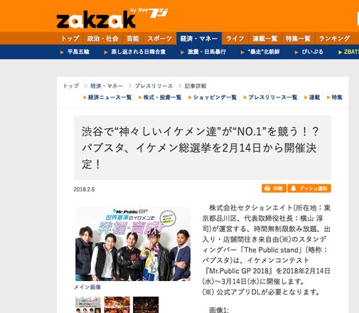 渋谷で“神々しいイケメン達”が“NO.1”を競う!?パブスタ、イケメン総選挙を2月14日から開催決定!https://www.zakzak.co.jp/eco/news/180206/prl1802060137-n1.html