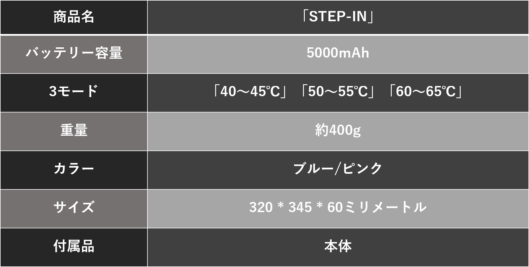 【STEP-IN】は3段階に温かさを調節できる機能。5段階の高周波振動。グラフェン素材の採用。