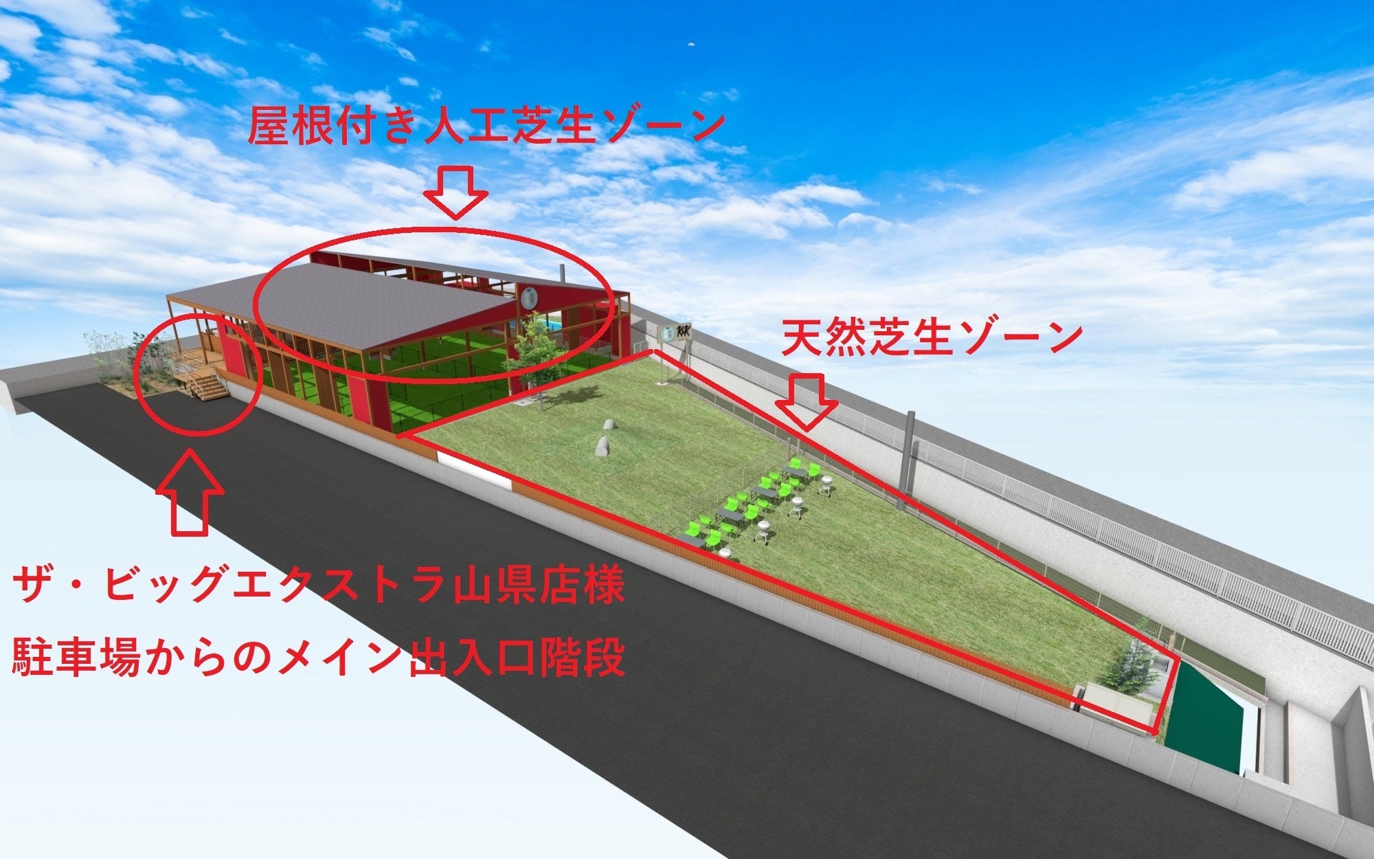 ・屋根付き人工芝生貸し切りゾーンについては、ご予約がない時間帯に関してはフリーゾーンとしてご利用可能です。