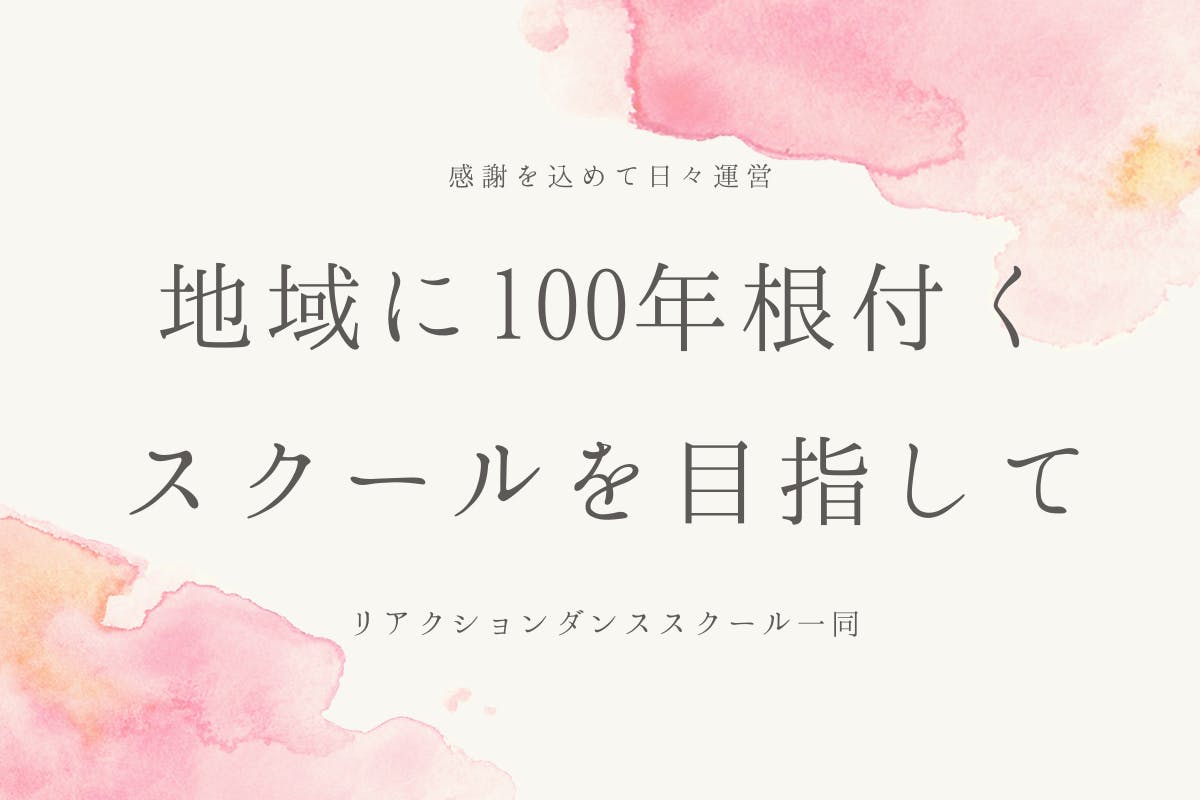 そうした中で、改めてダンススクール を事業として行う「100年地域に根続くダンススクール を目指して」という理念に辿り着きました。これは自分自身や経営の覚悟の表明でもあります。時間だけは誰しもに平等に流れ進み、子供も先生も私たちも時代も成長し変わっていきますが、今が良ければ良いということではなく、もっとよりずっとの精神で時間と共に変化を続け、関わってくれた方々にとって継続的に価値を提供できる存在になりたいと思っています。
