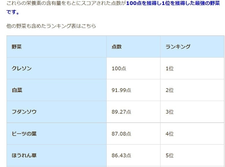 栄養価ナンバー1の