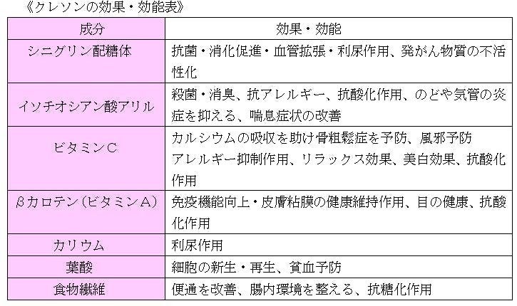 「クレソン」は、欧米では薬用ハーブとしても活用される身近な野菜です。日本では、ステーキの横にある付け合わせくらいの印象しか無いかもしれませんが、近年の研究では、炎症を抑えたり、のどの筋肉を緩めて、「咳」を鎮めたり、「喘息」の発作を和らげる働きがあることが分かり注目されています。もともとクレソンは、ヨーロッパでは、血液浄化や滋養強壮などの薬用ハーブとして用いられてきた歴史があります。クレソンの学名はナスタチューム・オフェチナーレと言いますが、オフェチナーレは、「薬効がある」という意味です。 また中国では、クレソンのことを「西洋菜千」と呼び、咳止めや解熱の生薬として用いています。日本に伝えられたのは明治初期の頃で、「オランダガラシ」または「ミズガラシ」と呼ばれました。医薬品として販売されている国もあります。薬効をもたらす一つは、『イソチオシアン酸アリル』ではないかと考えられています。この成分は、にんにくやワサビ、大根にも含まれる辛みのもとになる物質の仲間で、クレソンのツンとした辛味成分です。『イソチオシアン酸アリル』は、抗酸化作用を持っているので、これが炎症を抑える働きをしていると考えられるのです。