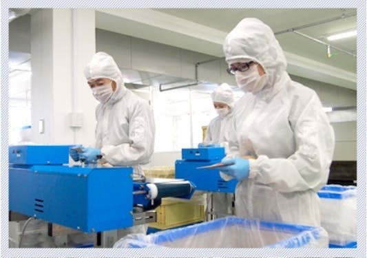 GMPとはGood Manufacturing Practice の略で「適正製造規範」といい、原材料の受け入れから製造、出荷まで全ての過程において、製品が「安全」に作られ、「一定の品質」が保たれるようにするための製造工程管理基準のことです。このGMP管理基準を満たした認定工場で製造することにより、皆さまに「安心」してご愛顧いただける「安全」な製品を提供致します。