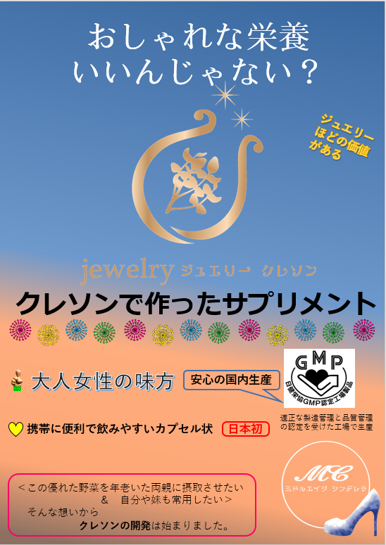 そんな「jewelry ジュエリー クレソン®」は “ジュエリーほどの価値がある” というキャッチコピーの通り~いつまでも若々しく&チャーミングに~「ミドルエイジ シンデレラ」シーリーズの一つで御座います。