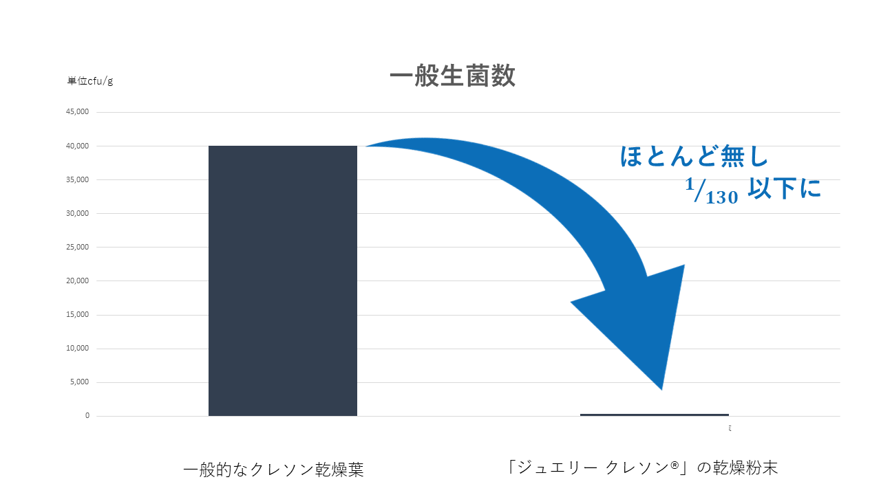 ●さらに、「ジュエリー クレソン®」の粉末は、普通のクレソン乾燥葉に含まれる一般生菌もほとんど無し。