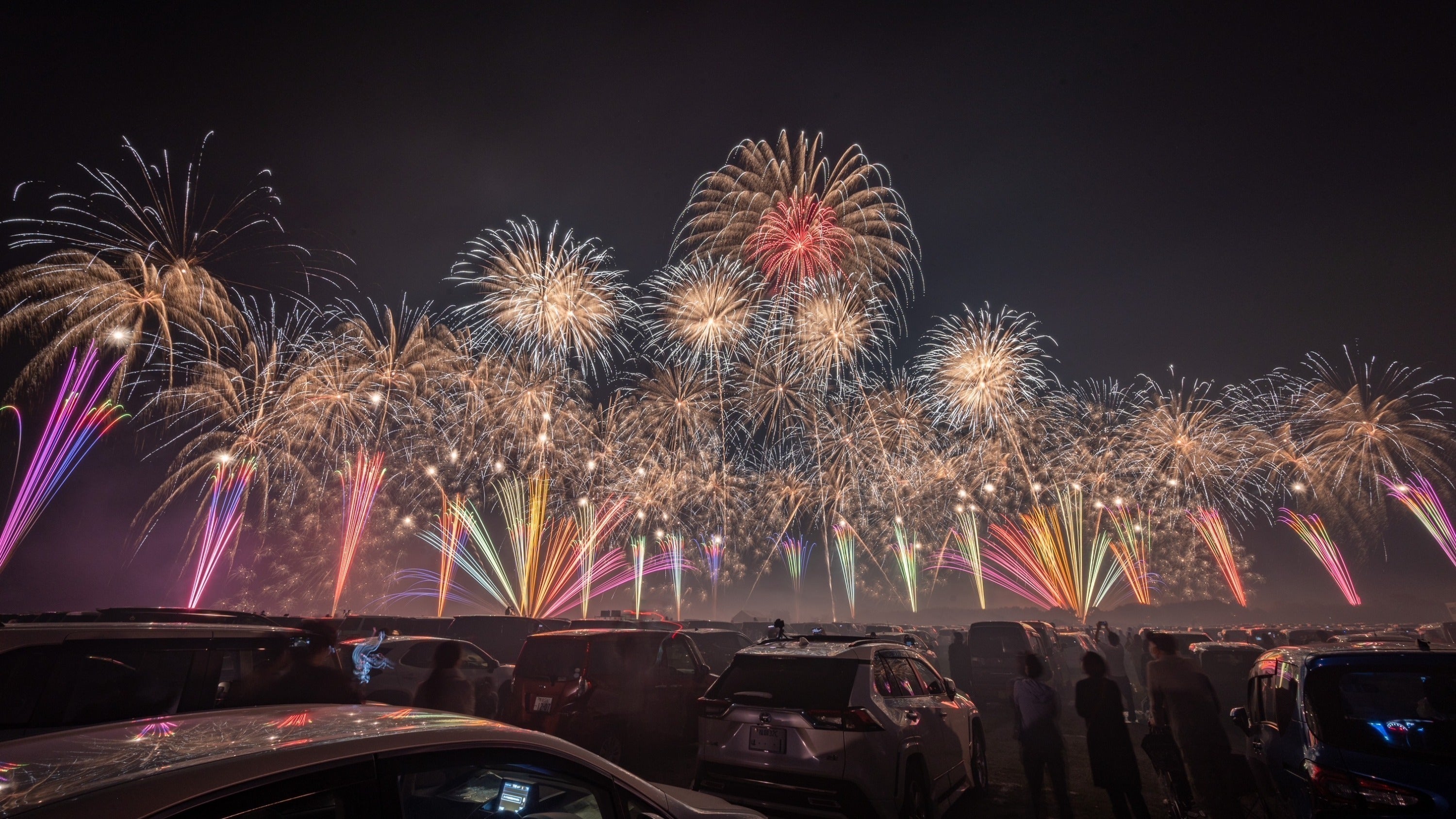 『ドライブイン花火熊本』は、新型コロナウイルス感染症イベント支援プロジェクトとして、三密を避け、ソーシャルディスタンスを保った"車で入退場する"新しいスタイルの花火大会です。