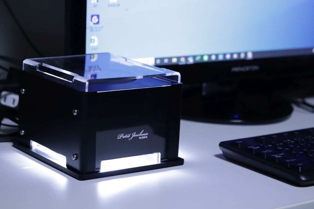 じゃあ、フィルターに光触媒を塗布して強力なLED光を常時照射し、そこに空気を吸い込めば・・・という考えのもと開発に着手、「Petit Joshua1」が完成したのは約2年前でした。