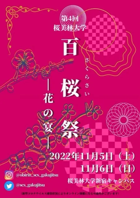 今年は、百桜祭を2022年11月5日(土)と6日(日)の2日間、新宿キャンパスで3年ぶりの「対面・配信形式」で開催します!