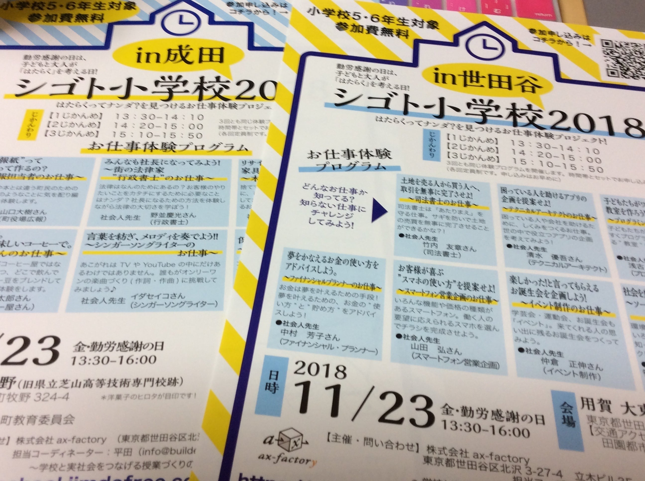 2018年勤労感謝の日のシゴト小学校での実施をマイルストーンとし、
