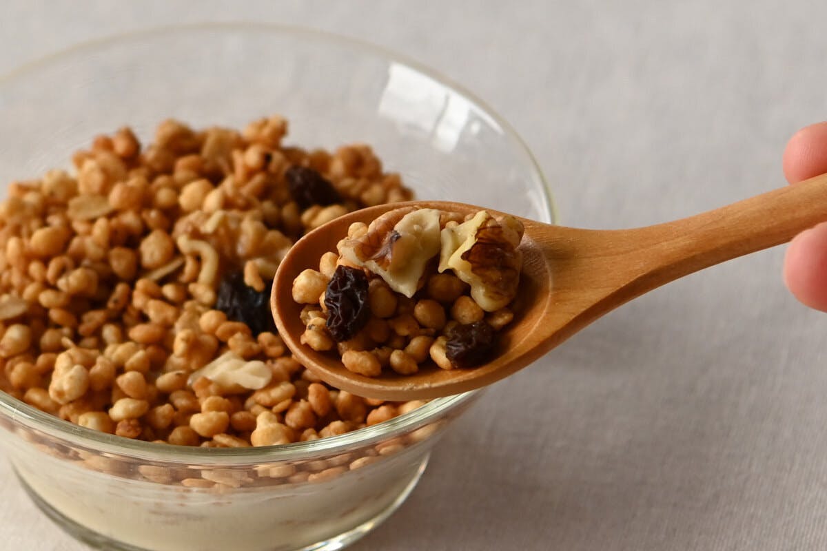 穀物の栄養と食物繊維、ビタミンが手軽に摂れるため、忙しい朝食に、またおやつにもおすすめです。