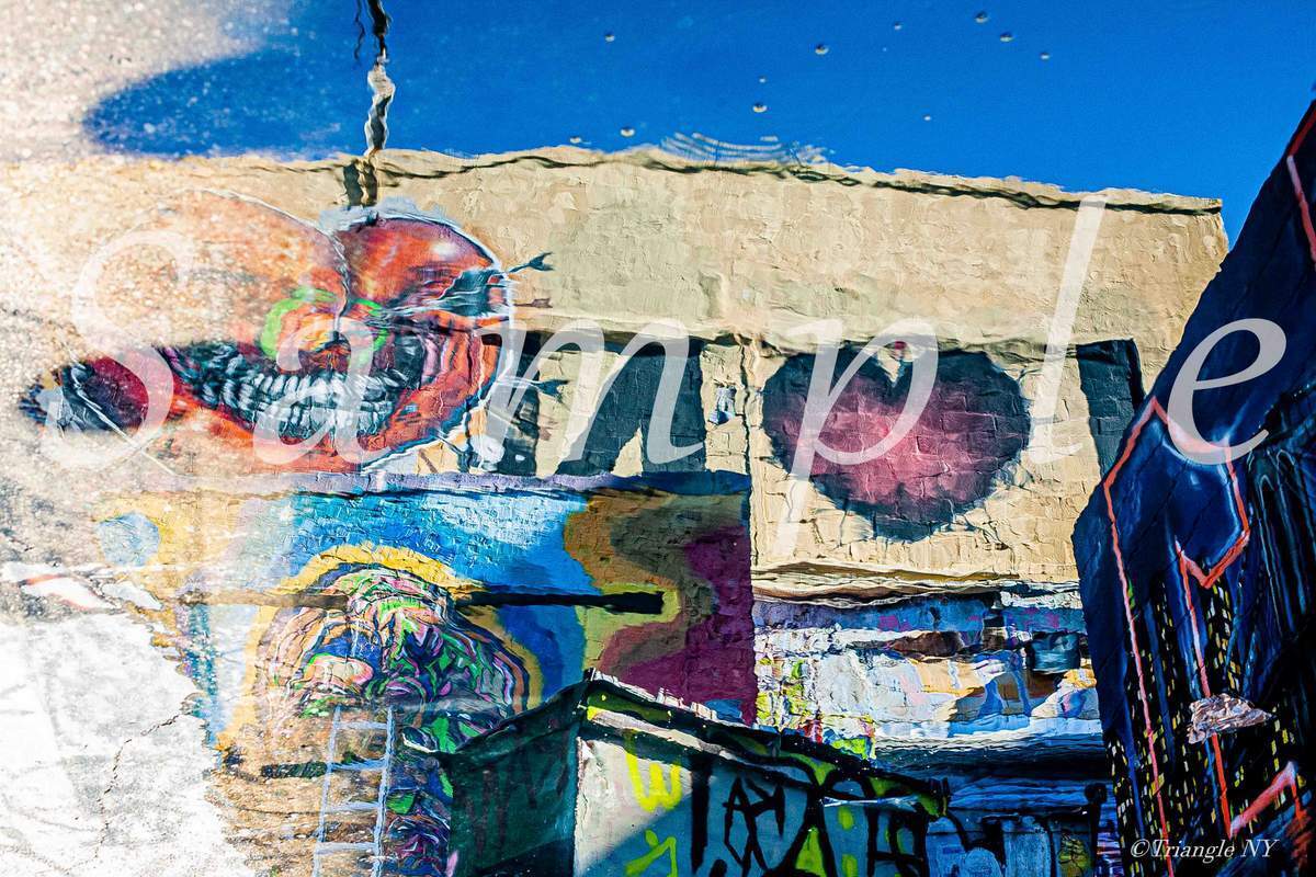 カレンダー9月の写真は”5Pointz”が無くなってから2023年で10年。街から一つの大きなアートが消えた瞬間です。都市開発を名目に新たにコンドミニアムを立てるという計画でグラフィティが全面に描かれたビルが取り壊されました。写真としては、ニューヨークの街から一つのアートが消えゆく儚い想いを水溜りの映り込みで表現した作品になります。