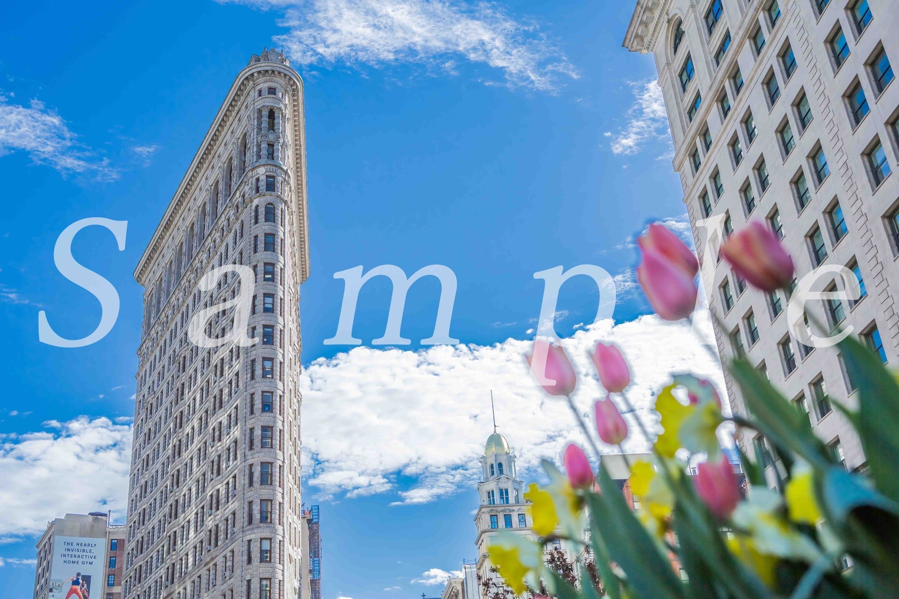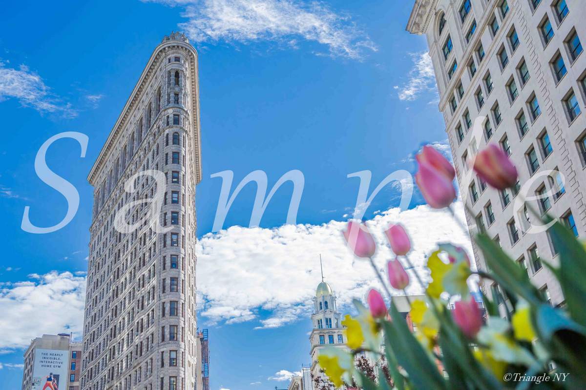 カレンダー4月の写真は暖かいある1日に咲いたチューリップが空に届けと言わんばかりに成長する姿をニューヨークのランドマーク”フラットアイアンビル”と共に映し込んだ1枚になります。