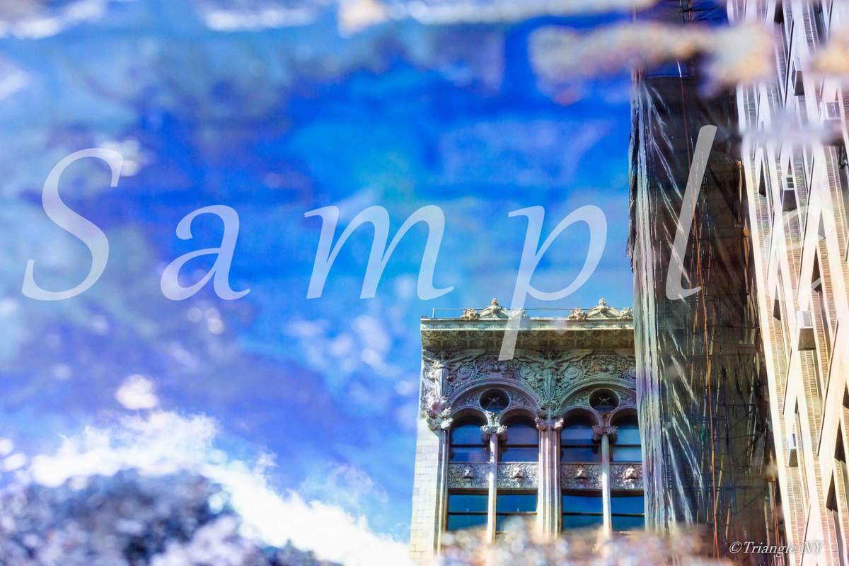4つ目、水溜りに映っている「青」です。ニューヨークでは日によって真っ青に晴れ渡る何とも気持ちの良い日があります。この街に訪れたことのある方ならお分かりでしょうが、本当に見事なまでに「真っ青」な空です。その空の色が、ニューヨークという街に非常にマッチし、フォトジェニックに魅せてくれる効果があるのです。”ニューヨーク”と言えば”真っ青な空”を思い出す空もいらっしゃるのではないでしょうか。私もその一人ですので、”青”でこの写真を染めました。そして最後に5つ目、水溜りの色が赤がかった紫がかった色になっていると思います。これは太陽の光に反射している油の色です。ニューヨークという街のストリートは汚い部分も多く、この油もまた普通に見ると汚い存在です。ですが、それを少し別の角度から見るとこういったアーティスティックな見方もできるということを表現してみました。別に汚い街の存在を認めている訳ではありませんのであしからず。