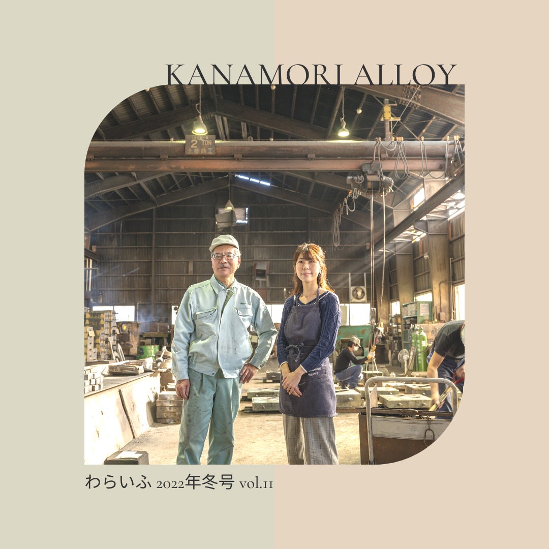 お世話になります、金森合金の高下です。皆さま温かいご支援を頂きまして、誠にありがとうございます!わらいふ2022年冬号 vol.11 12/20発売号という雑誌にて、特別企画 わが道「金属に魅せられ 鋳物が創る新感覚商品」金属素材の循環、SDGsに通ずる魅力工業製品、ライフスタイル製品、教育普及の3本柱をテーマに、現在稼働する金沢市内の鋳物工場での撮影、インタビューの記録を特集頂いております。本誌内でもCAMPFIREプロジェクトのご紹介をさせて頂きました。星稜高校の生徒たちとの取組みを、多くの方に知って頂けますよう、ぜひお伝えを頂けますと有難いです。今日の金沢は雪で、とても寒い一日です。皆さま、どうぞご自愛頂き、お過ごしいただけますと幸いです。