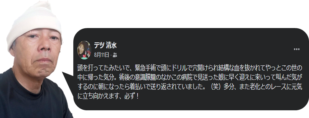 なお、2022.6月のレース前日の準備中に不注意で転倒、7月レース後に頭蓋骨硬膜下血腫と判明し、手術。