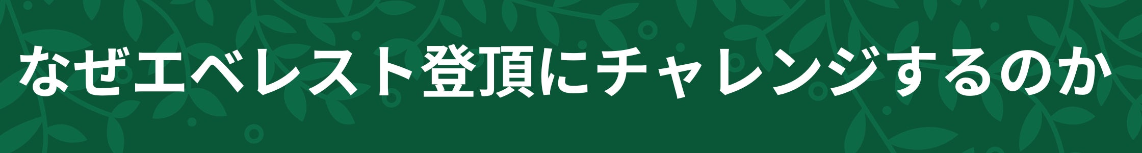 私は現在35歳で、人生100年時代と考えたときに、あと65年しかないと思い、日々焦りを感じておりました。残りの65年で何ができるかを考えると、人生一度きりなので自分にしかできない、周りの人が真似できない、尚且つ歴史に名を刻むよ うなチャレンジをしたい という気持ちが強くなっていきました。自分が大事にしている言葉は、チャールズ・ディードリッヒの「今日という日は、残りの人生の最初の日である」 という言葉です。 これを聞いたときに、衝撃を受け、時間は有限なので無駄な時間を使っている場合ではないと考えるようになりました。 これから体力が少しずつ低下してくる前にしかできない、スケールの 大きなチャレンジをしたいと思うようになり、それが自分にとってエベレスト登頂しかありませんでした。