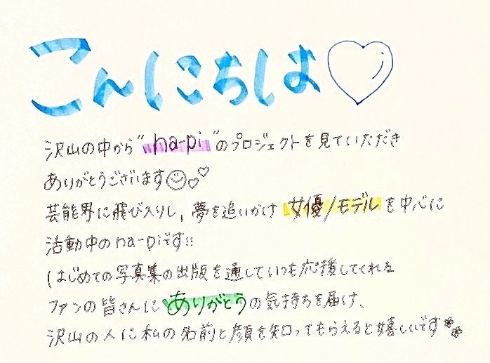 はじめてのことだらけで緊張したけど、応援してくれる皆さんのおかげで楽しくて、応援がどんどん増えていって、女優やモデルの活動も増えていって、na-pi、本気になりました。