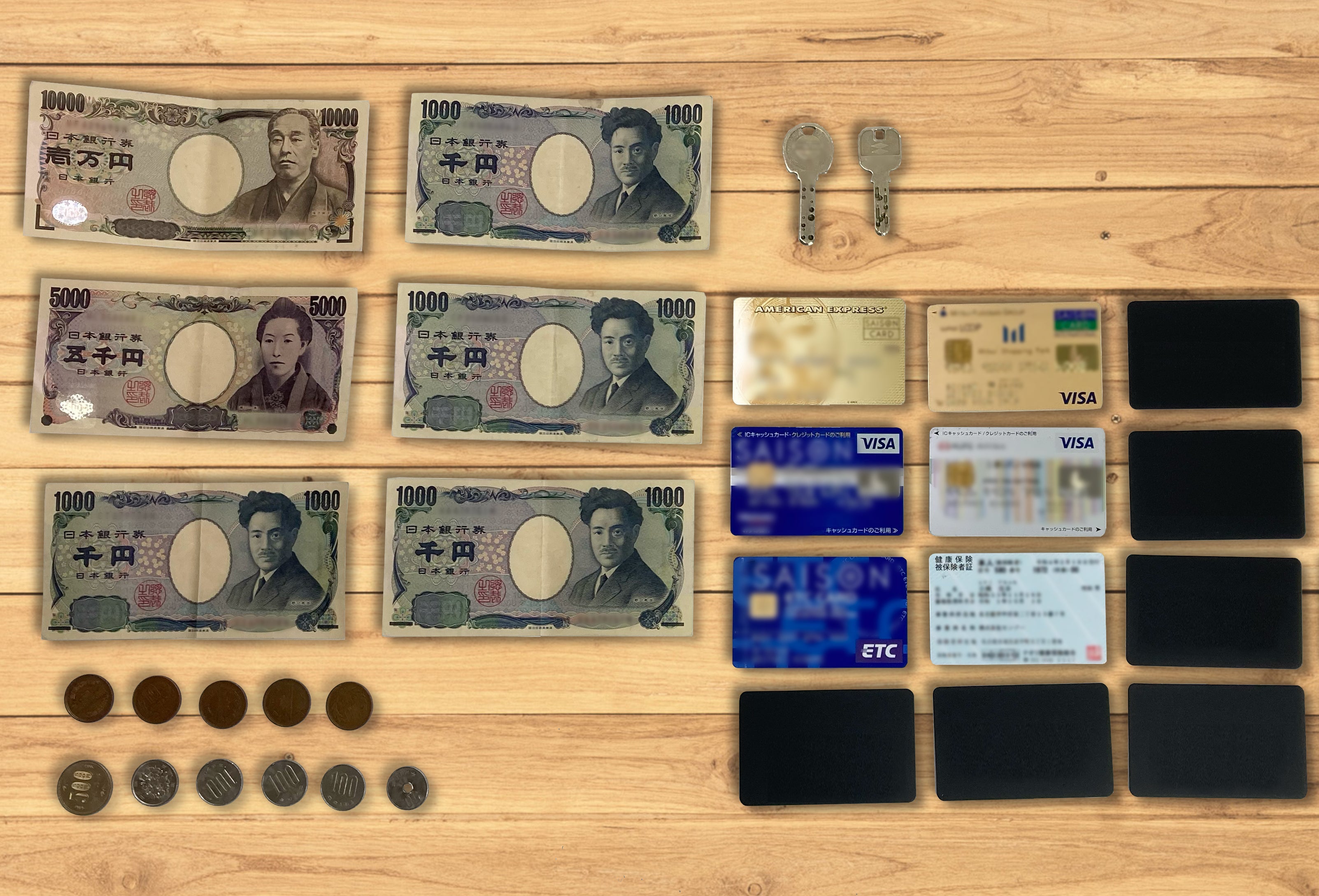 ※お財布に紙幣6枚、カード12枚、コイン11枚、鍵2本を入れた状態です。