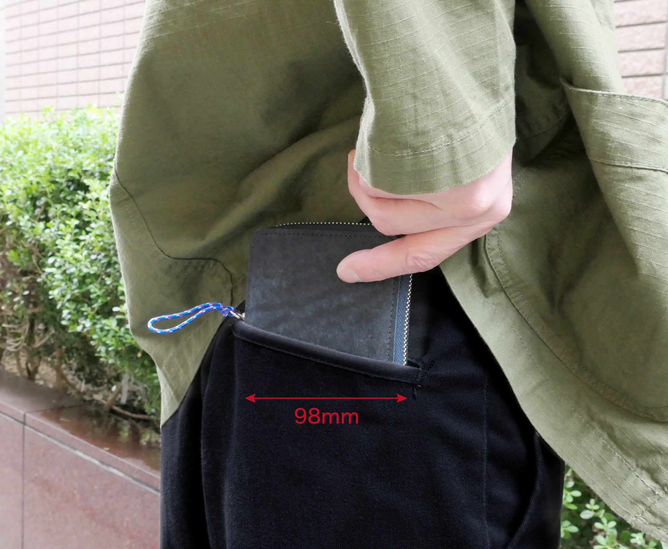 パンツの後ろポケットにもスッキリ入るサイズになっています。