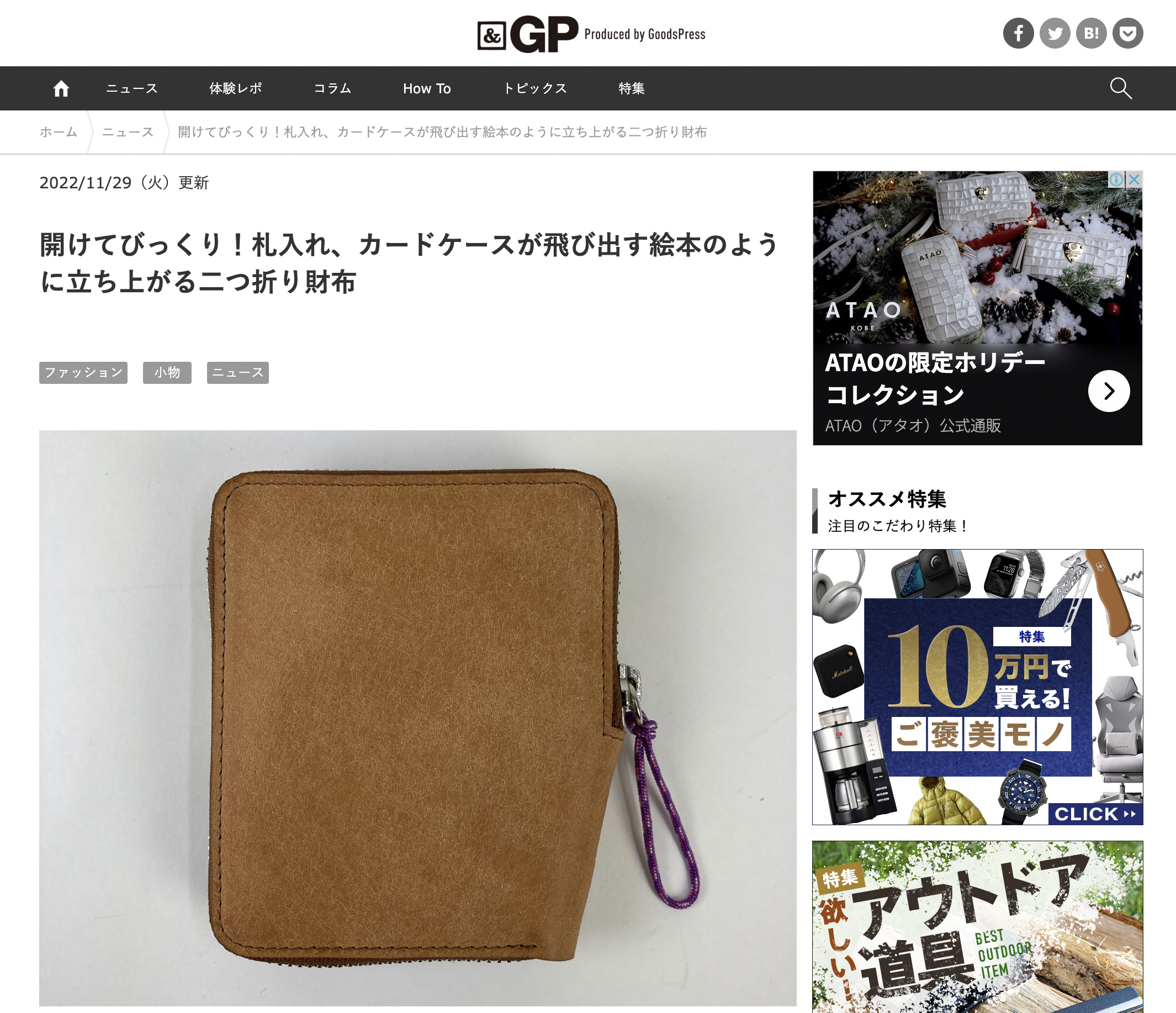 絵本に使用されているポップアップするギミックをヒントに商品開発したお財布です。紙型を1mm単位で何度も試作し製作したまるで絵本から飛び出したような不思議なお財布です。ガバッと大きく開閉することで視認性も高くお札、カード、コインが取り出しやすい作りになっています。キャッシュレスが進む中でも現金や小銭の他にマイナンバーカード、ポイントカード、免許証、保険証、クレジットカード、銀行カードなどのカードは自宅に置いてお出掛けしたくても携帯必須ですね。。ファスナーの引き手にはアウトドア用のロープにも使用されている高強度のナイロン糸(80kgf: / 重量キログラム)を使用し、輪っか状にすることでグローブをつけたままでも開閉し易い作りになっています。またファスナースライダーに付属している丸カンに別売りのストラップ(高強度のナイロン糸、949kgf: / 重量キログラム)を取り付けて襷掛け仕様としてもご利用いただけます。ファスナーは耐食性に優れ滑りが良く開閉しやすいYKKファスナーのEVERBRIGHT®(※1)を採用しています。