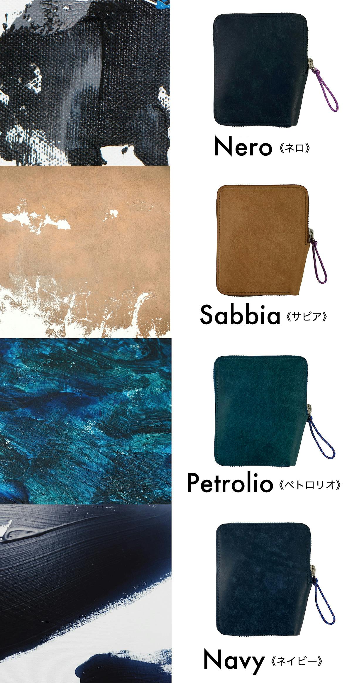 【 カラー 】4色展開 、Nero(ネロ)、Sabbia(サビア)、Petrolio(ペトロリオ)、Navy(ネイビー)
