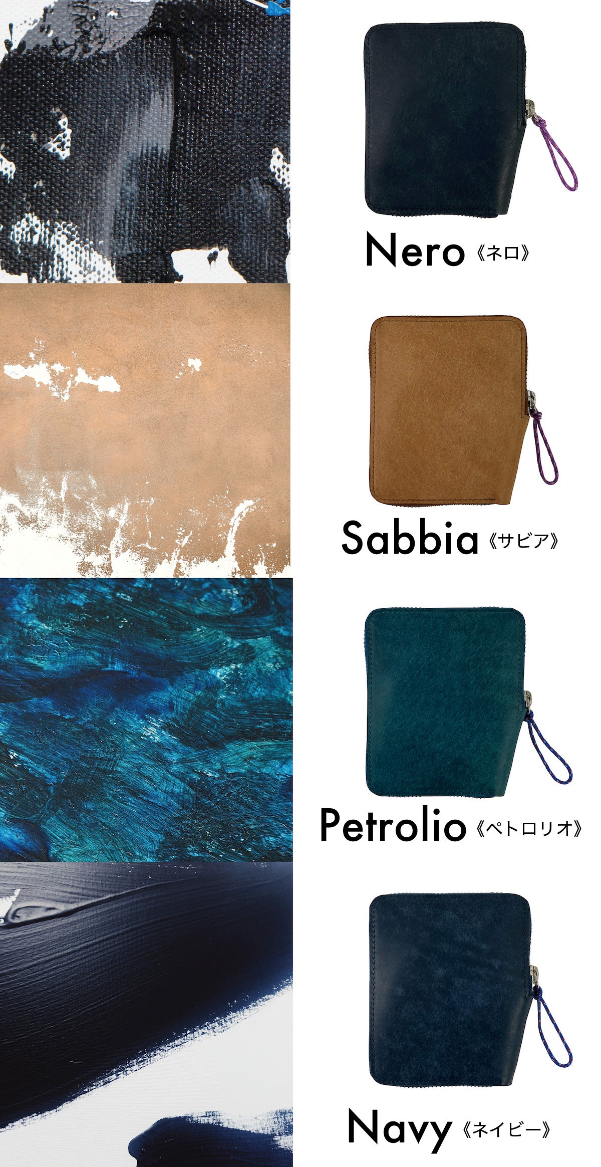 【 カラー 】4色展開 、Nero(ネロ)、Sabbia(サビア)、Petrolio(ペトロリオ)、Navy(ネイビー)