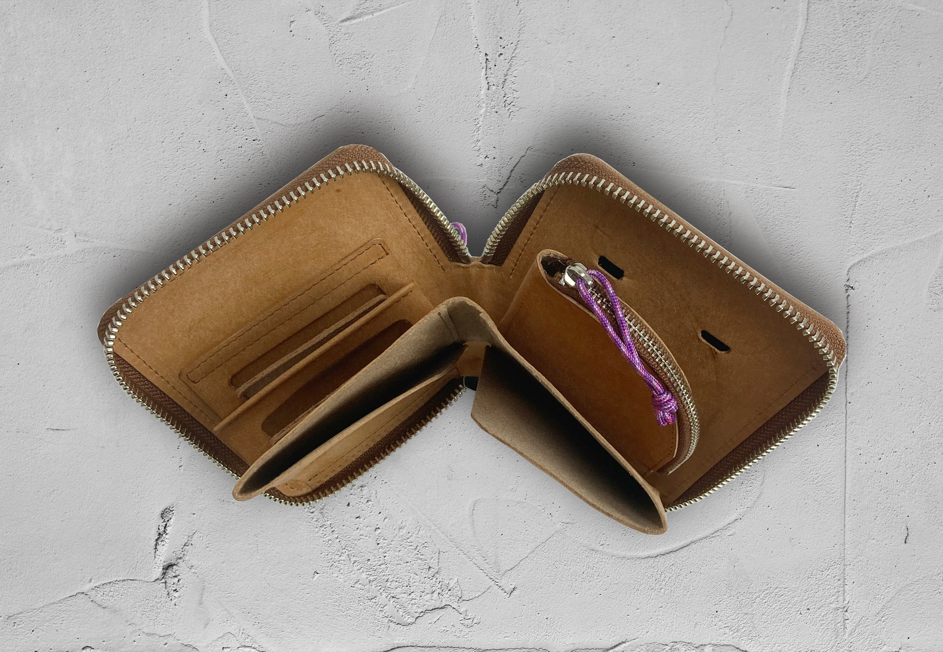 絵本に使用されているポップアップするギミックをヒントに商品開発したお財布です。紙型を1mm単位で何度も試作し製作したまるで絵本から飛び出したような不思議なお財布です。ガバッと大きく開閉することで視認性も高くお札、カード、コインが取り出しやすい作りになっています。キャッシュレスが進む中でも現金や小銭の他にマイナンバーカード、ポイントカード、免許証、保険証、クレジットカード、銀行カードなどのカードは自宅に置いてお出掛けしたくても携帯必須ですね。。ファスナーの引き手にはアウトドア用のロープにも使用されている高強度のナイロン糸(80kgf: / 重量キログラム)を使用し、輪っか状にすることでグローブをつけたままでも開閉し易い作りになっています。またファスナースライダーに付属している丸カンに別売りのストラップ(高強度のナイロン糸、949kgf: / 重量キログラム)を取り付けて襷掛け仕様としてもご利用いただけます。ファスナーは耐食性に優れ滑りが良く開閉しやすいYKKファスナーのEVERBRIGHT®(※1)を採用しています。