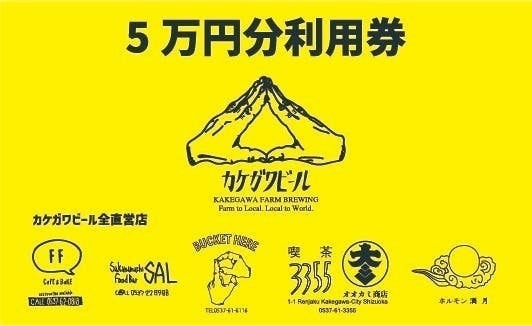 【KFB ごっつあんチケット 5万円分】50,000円カケガワビールの直営店で使える5万円分の利用券です。カケガワビールを含めて、飲食にご利用いただけます。