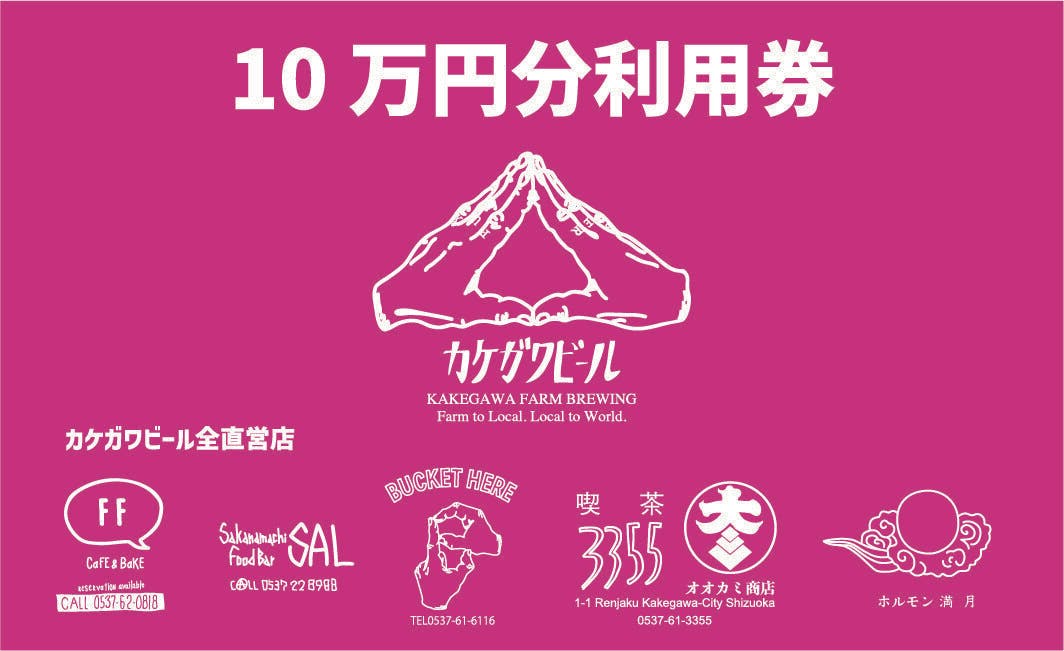 カケガワビールの直営店で使える10万円分の利用券です。カケガワビールを含めて、飲食にご利用いただけます。