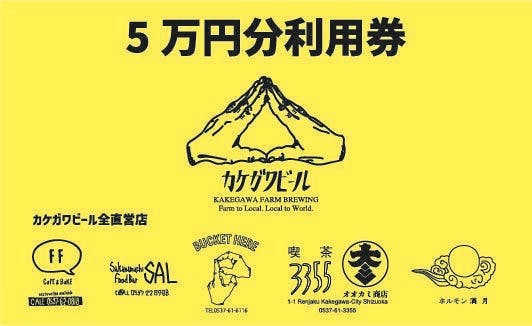 カケガワビールの直営店で使える5万円分の利用券です。カケガワビールを含めて、飲食にご利用いただけます。