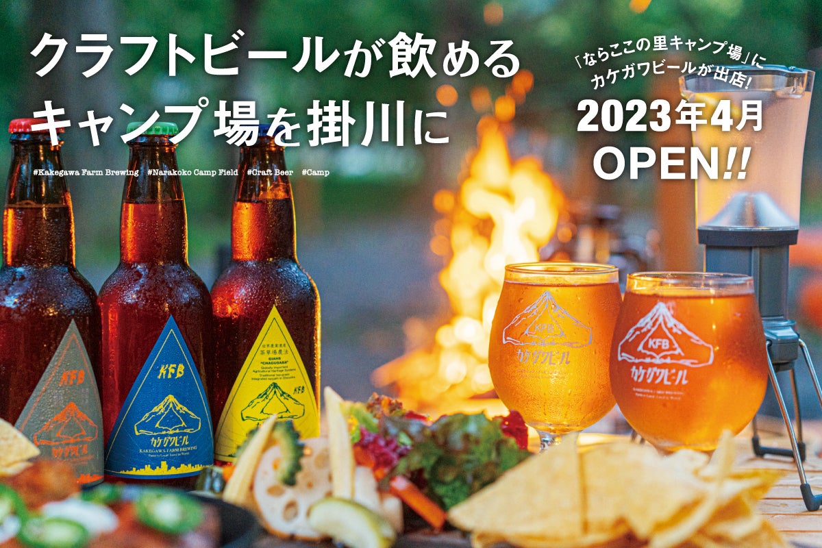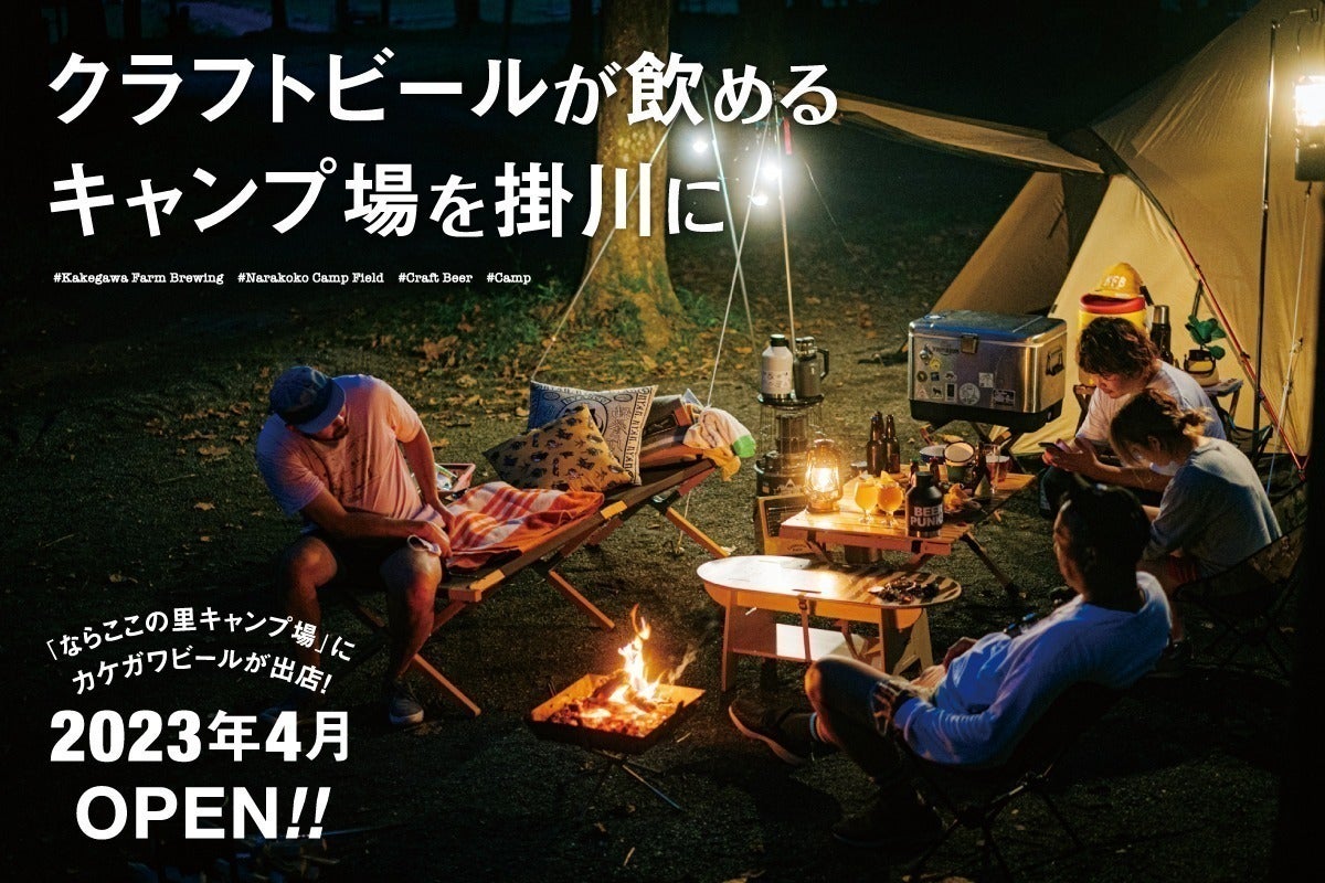そんな私達が、カケガワビールのボトルショップ&タップルームを「ならここの里キャンプ場」に出す事になりました!キャンプとビールが楽しめる、新しいコンセプトの直営店として2023年4月オープンに向けて準備を進めています。