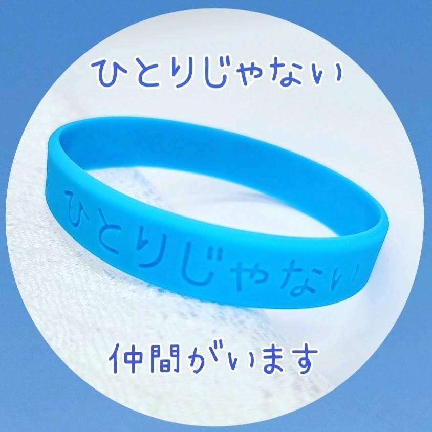 「#青いブレスレット運動〖ひとりじゃない〗ラバーバンド」の