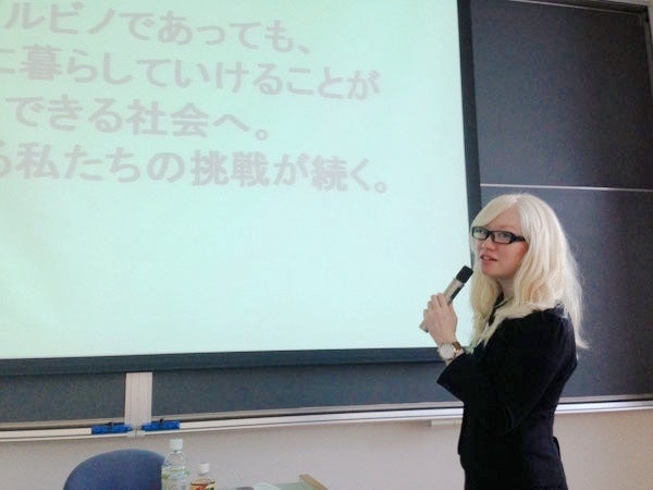 「見た目」の違いや、「見えづらさ」「アルビノ」のことへの無理解から、就職活動で難航した経験を経て、2007年2月にアルビノの人たちの当事者グループである「アルビノ・ドーナツの会」を設立しました。