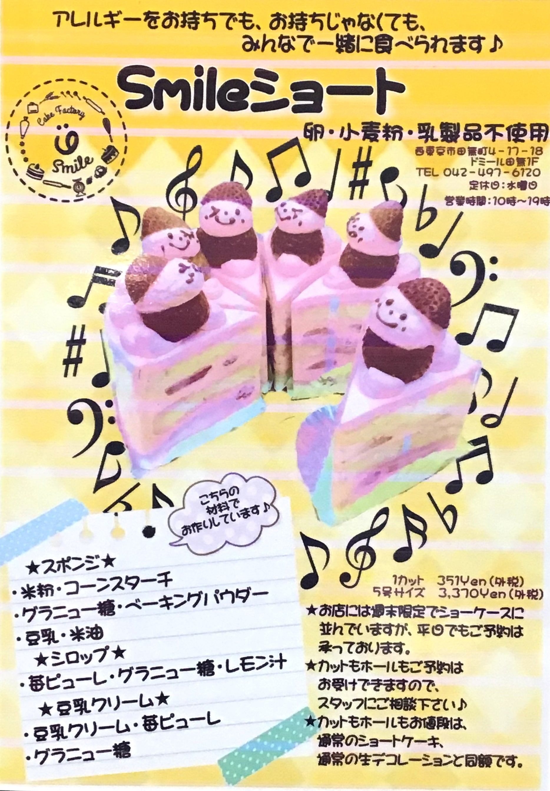 「卵、乳製品、小麦粉不使用」のショートケーキは、週末に、カットケーキで毎週お出ししてます!