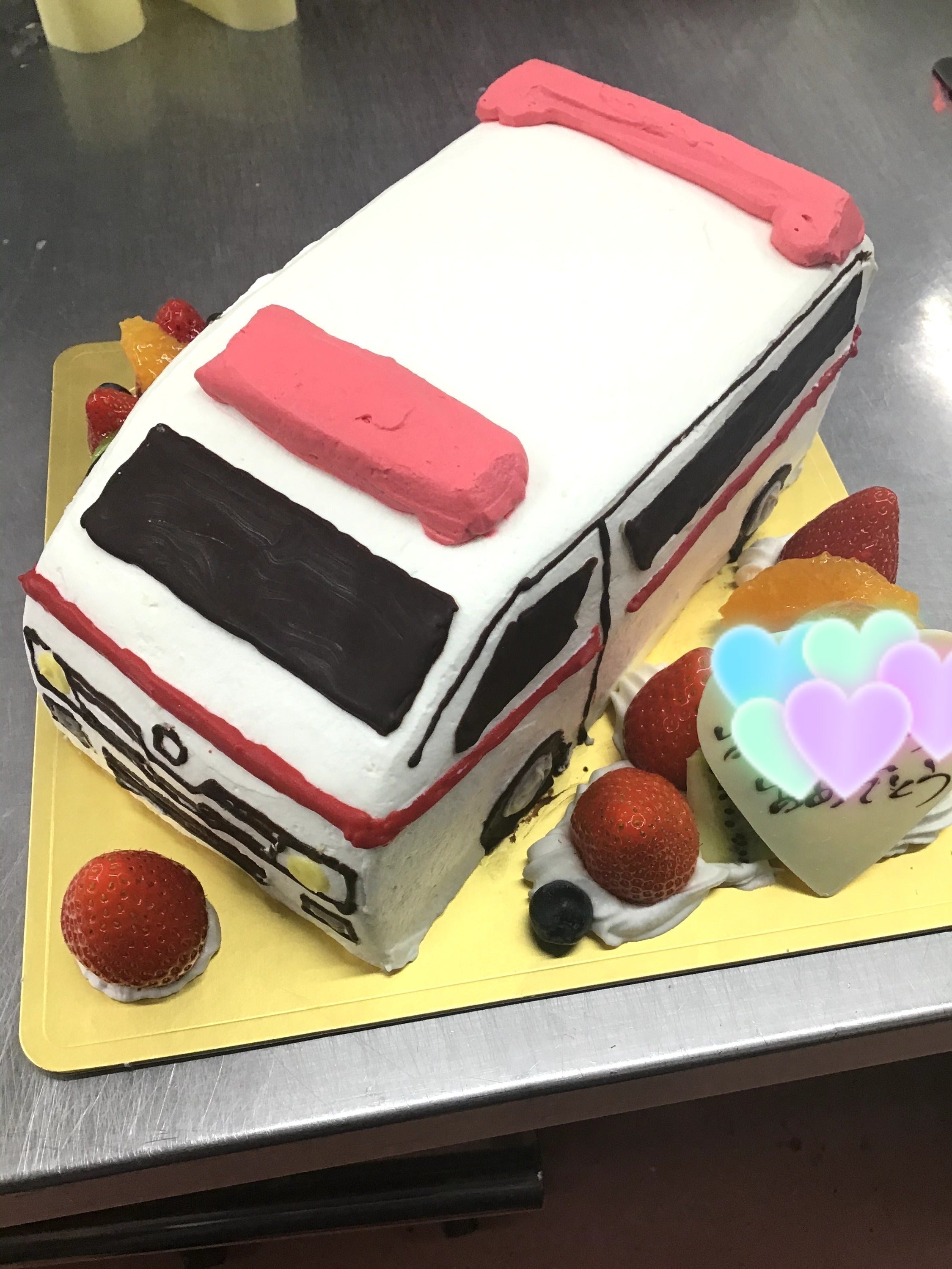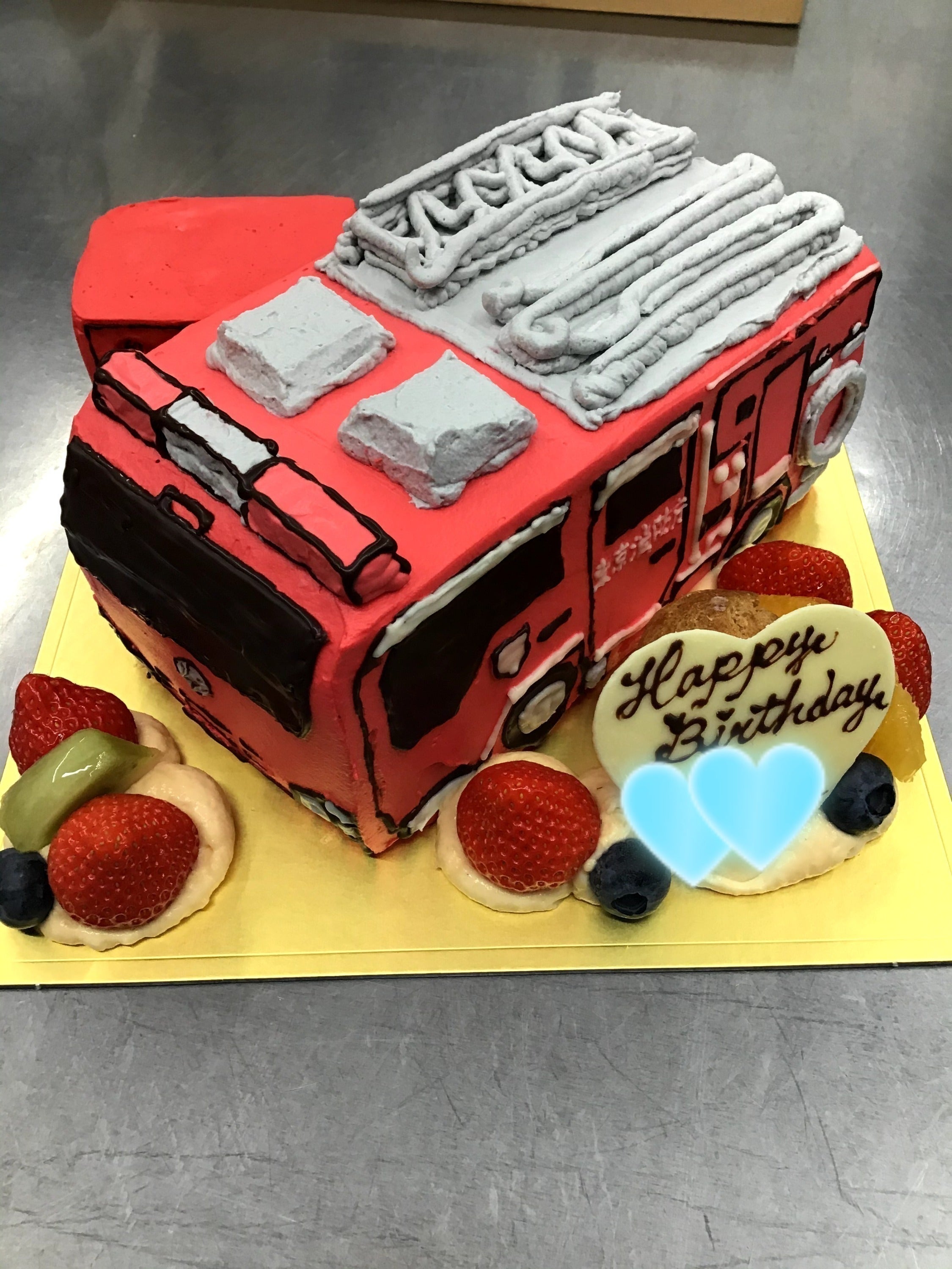 「消防車にお子さんが乗っているケーキ」や、