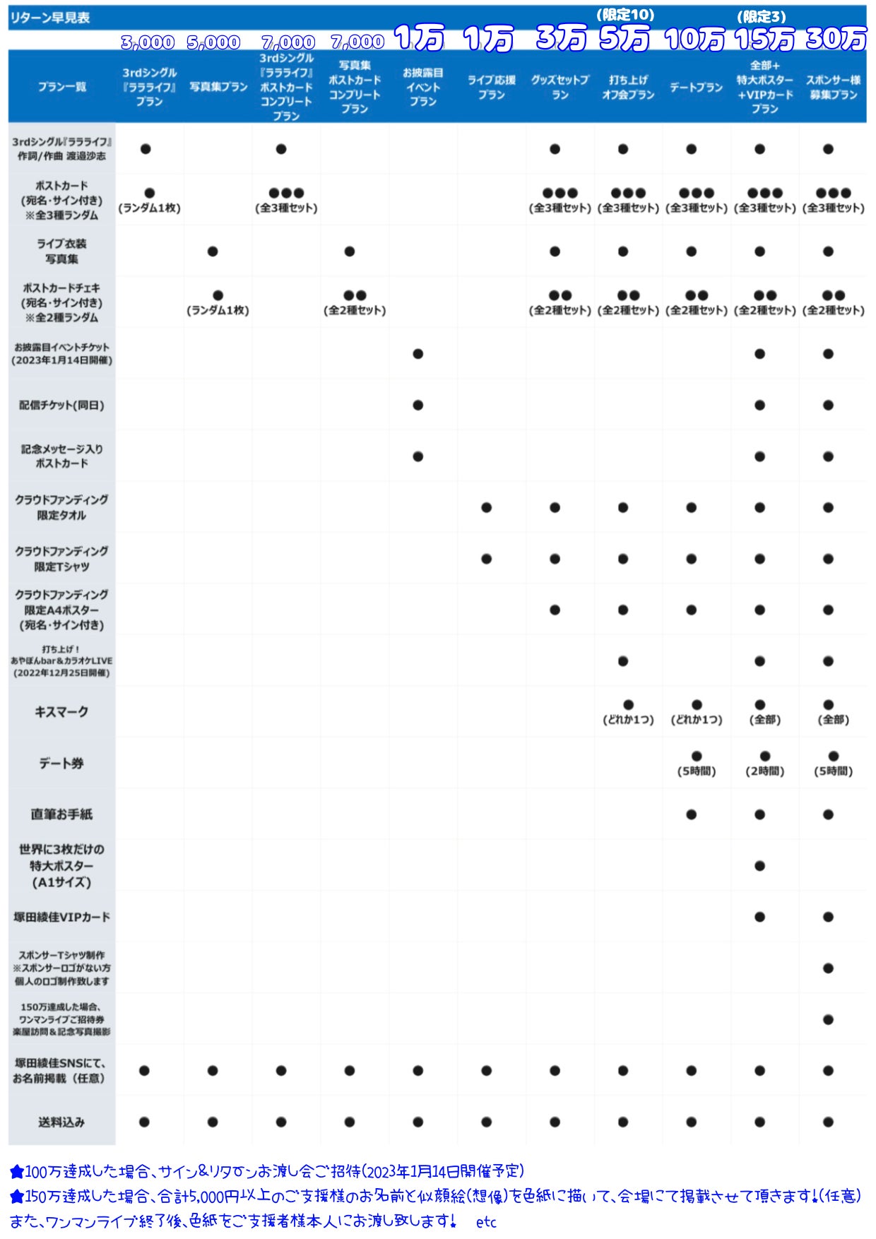 1月14日(土)サイン&リターンお渡し会予定(100万達成した場合)