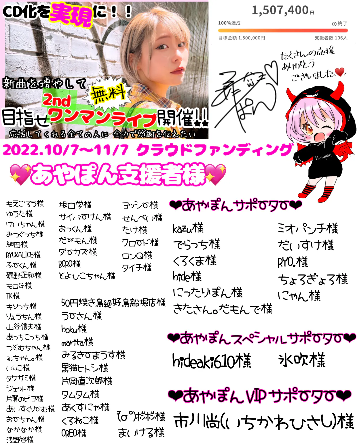 達成させようと予定より多くご支援して下さった方も沢山います、、