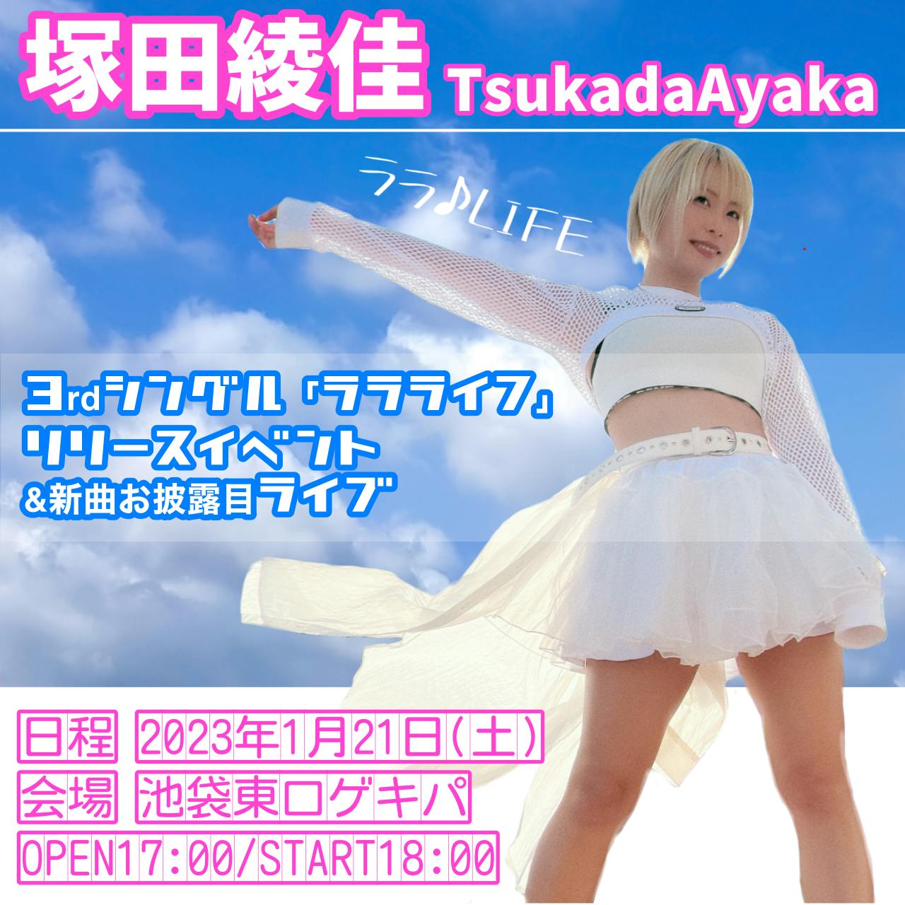 塚田綾佳 3rdシングル「ララライフ」リリースイベント&新曲お披露目ライブを開催します❤︎