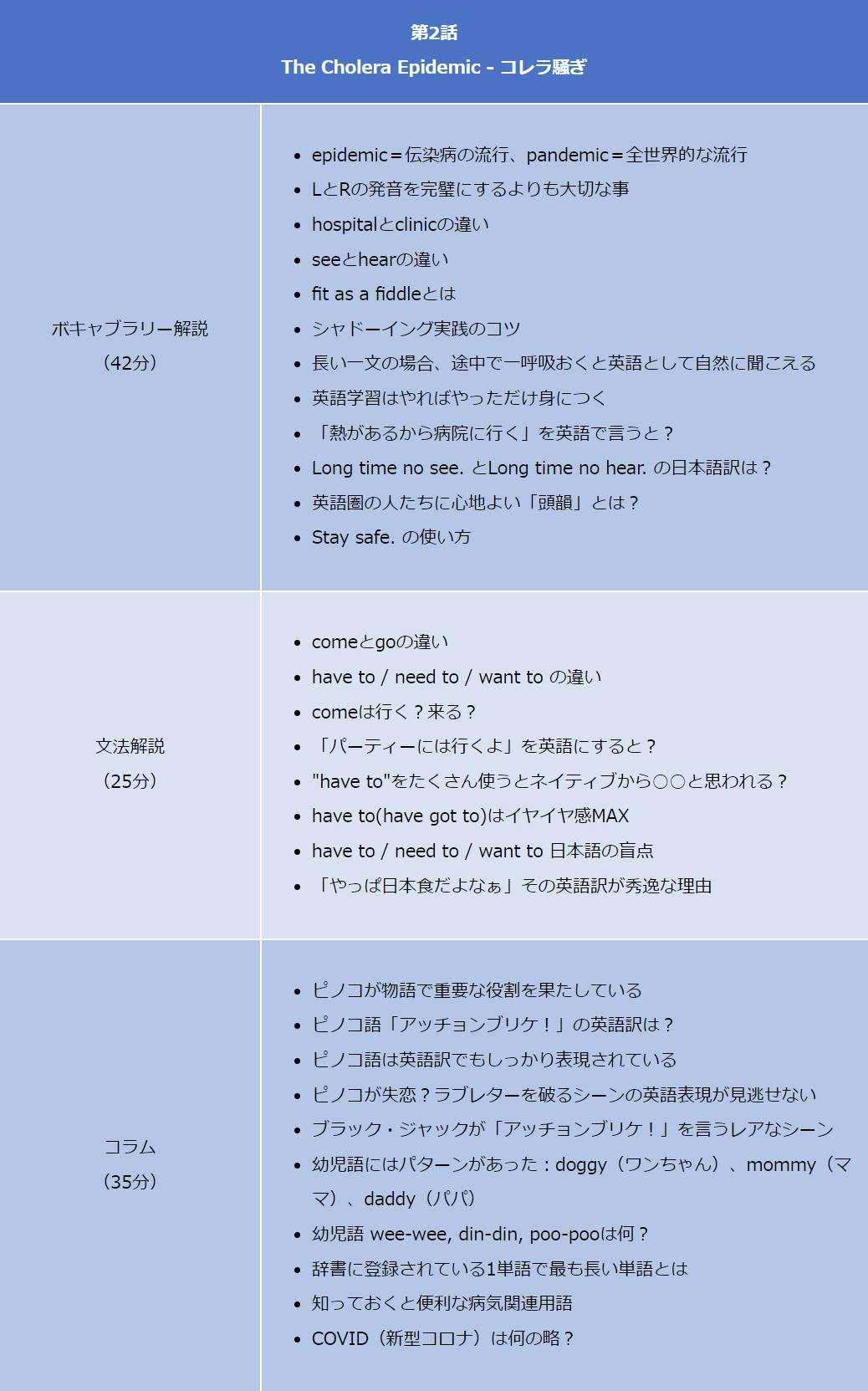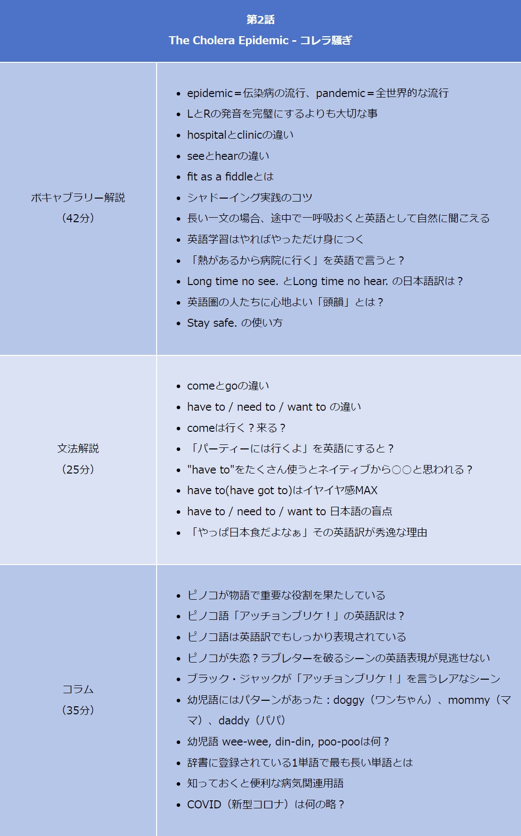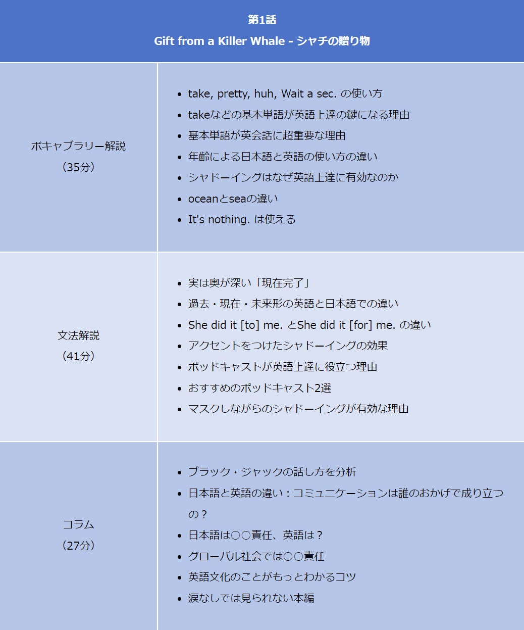 各本編後に5分間の英語学習レッスン(単語・フレーズ・シャドーイング)を収録しました。