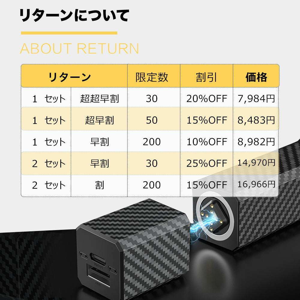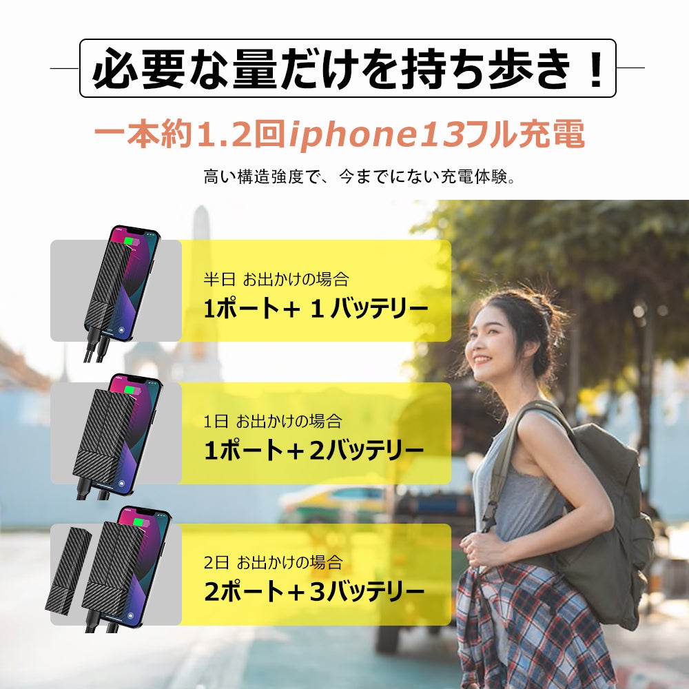 今の時代はモバイルバッテリーがないとなかなかお家に出れないになりました。日々周りをみて、モバイルバッテリーのサイズがだんだん大きくなったし、カバンも重くてかなり不便です。その問題を考え、18W急速充電対応、使う量によりバッテリー数決められ、バッテリー本体も小さいなモバイルバッテリーもあることを、是非皆様にもこんな便利さを共有したいので、今回プロジェクトを立ち上げさせて頂きました。