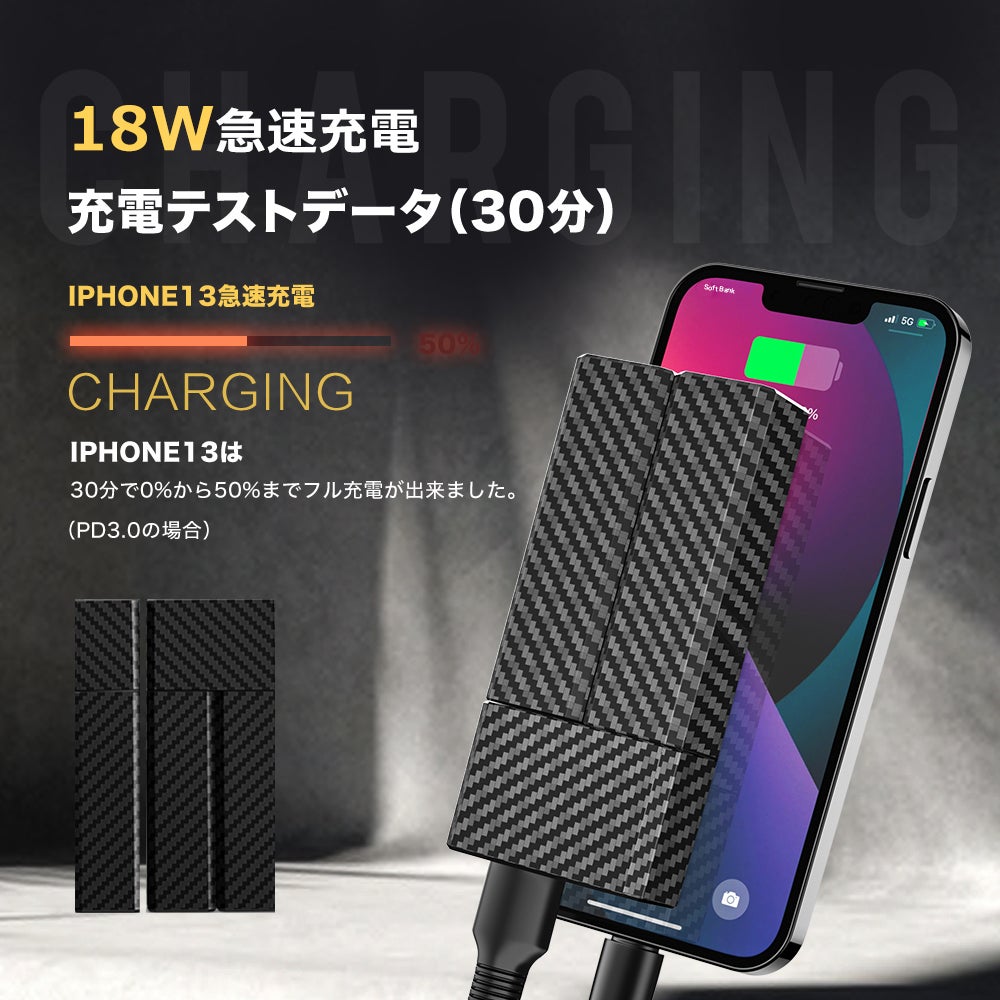 IPHONE13は30分で0%から50%までフル充電が出来ました。(PD3.0の場合)