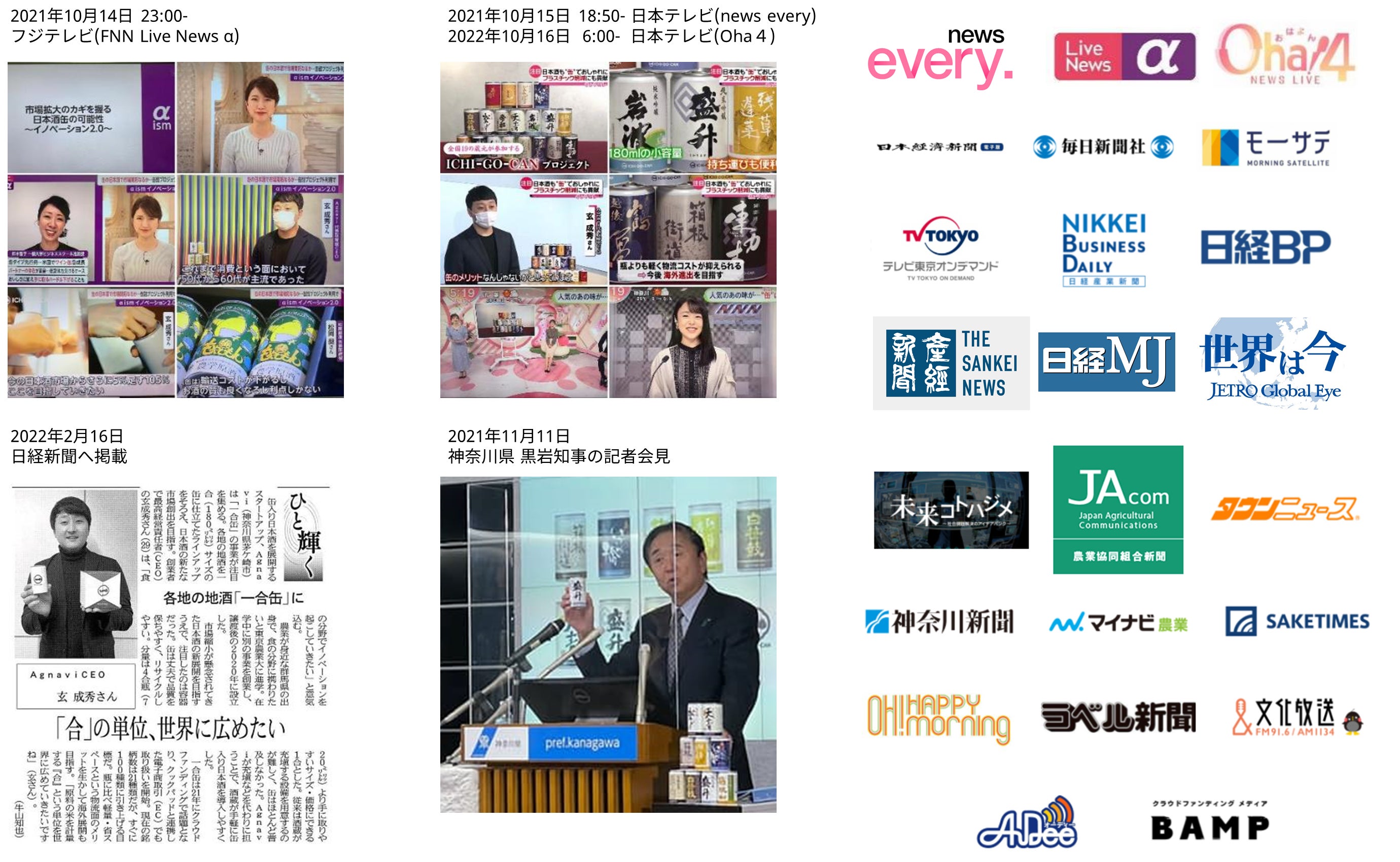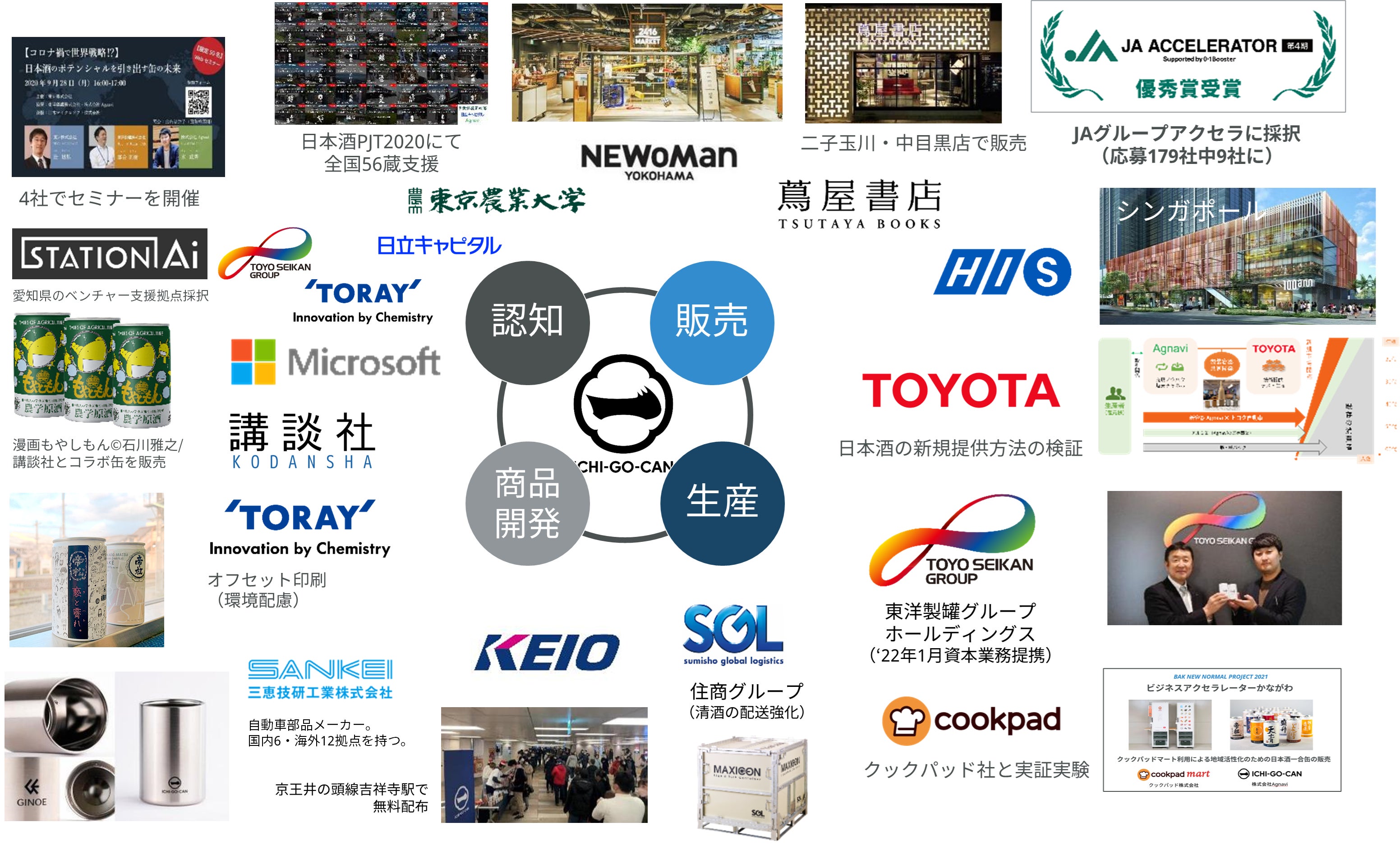 これまで、生鮮食品EC「クックパッドマート」の仕組みと、Agnaviが開発した一合180mLサイズの缶入り日本酒「ICHI-GO-CAN ®」による新しい消費体験を活用し、日本酒のつくり手と消費者を繋げ、両者の繋がりを活性化していく取り組みや、京王電鉄とAgnaviのコラボ一合缶企画、トヨタ⾃動⾞株式会社が持つ技術とAgnaviが有する全国の酒蔵ネットワークや日本酒充填ノウハウを生かした日本酒における新規容器の開発・販売実証実験などを行なっています。
