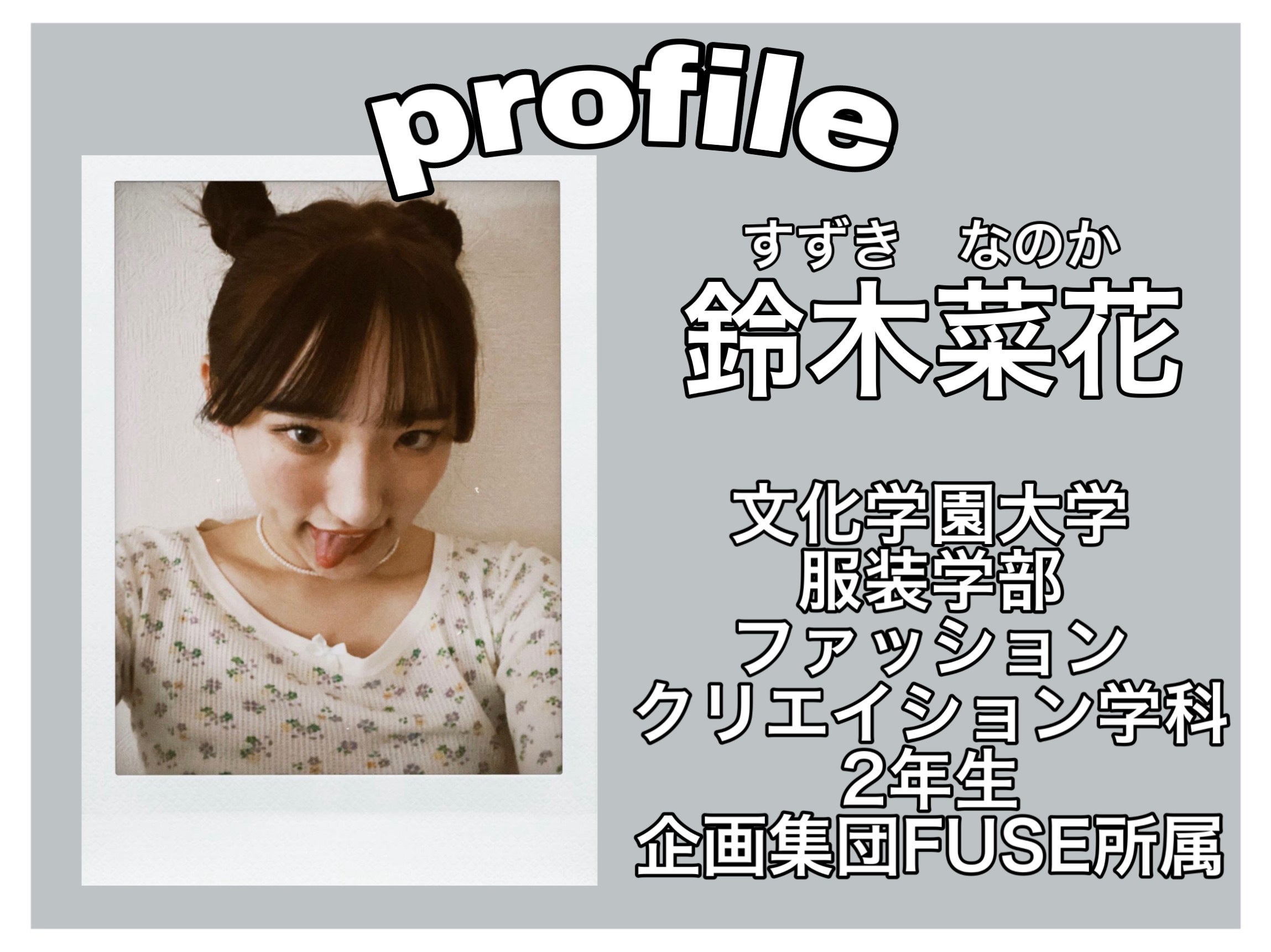 私は文化学園大学に通う大学2年生の鈴木菜花(すずきなのか)です。普段、大学では中・高の家庭科教諭の免許を取るために教職課程の科目を履修したり、自分のサイズで好きなデザインで服などを作ったり、企画集団FUSEという学生だけで1からショーを作るといった団体にも所属していて毎日楽しい学生生活を送ってます♫