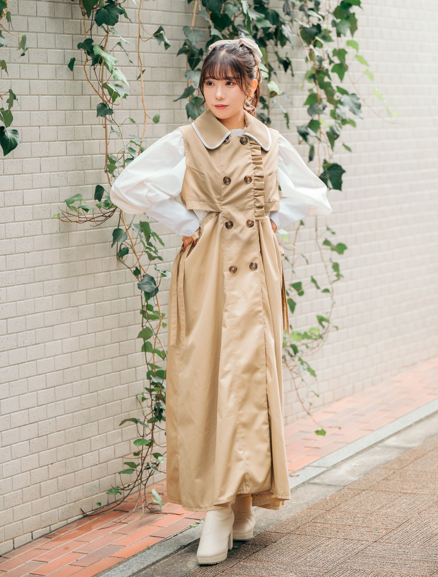 トレンチコートのディテールを取り入れたノースリーブのワンピースです♡