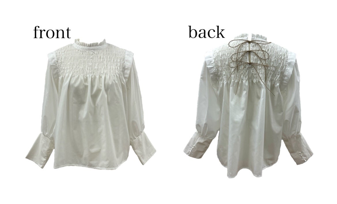 胸元のギャザーやボリュームたっぷりの袖がポイントのブラウスです♡