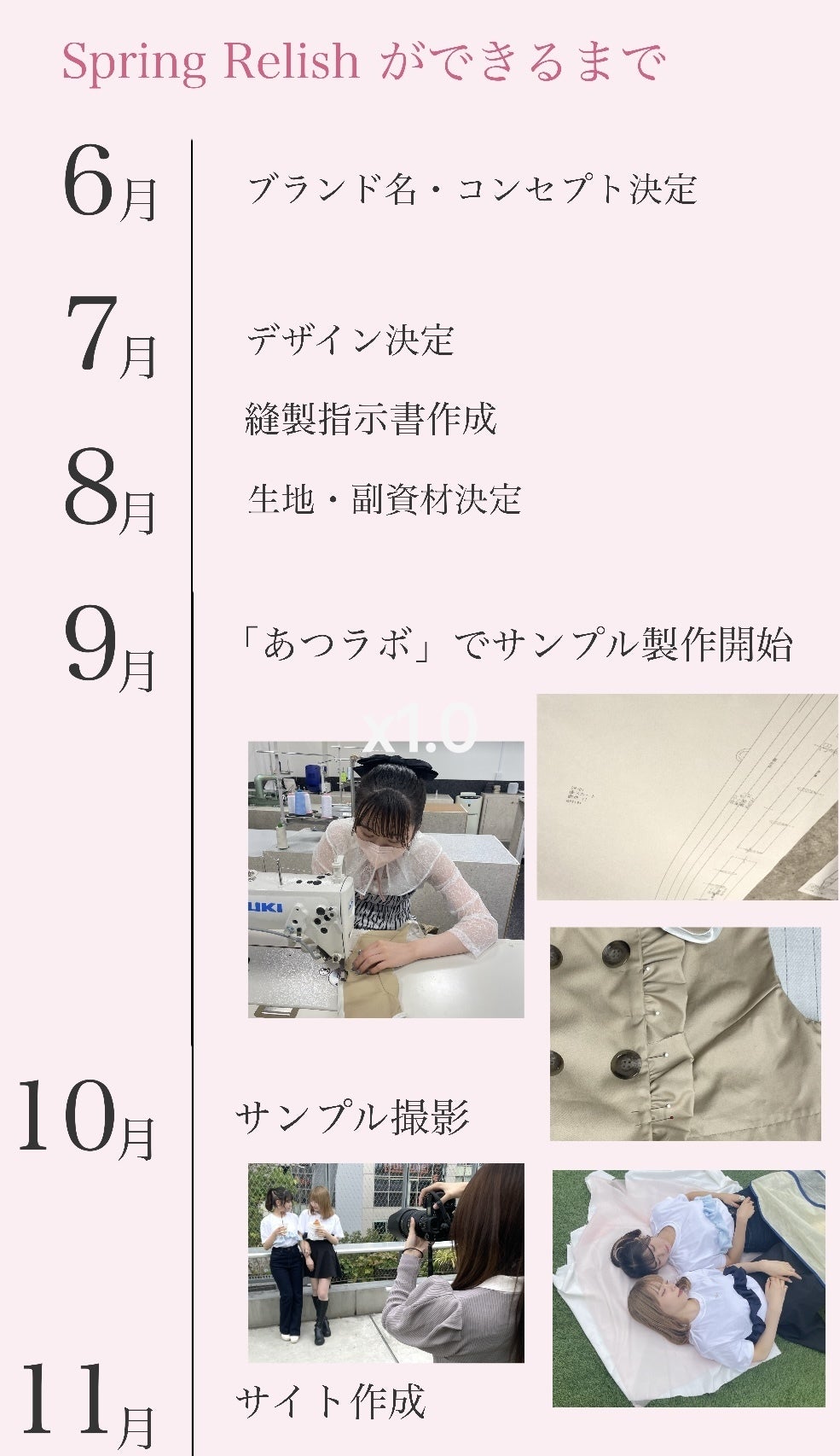 初めて衝突する問題や新しい知識などが渋滞する中で自分なりに考え、製作した特別なお洋服たちなので、目標を達成して皆様のお手元に届けられたらなと思っています。