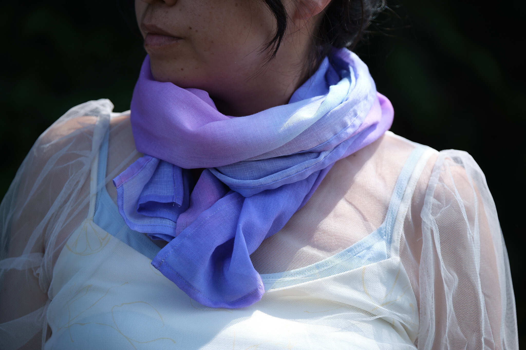 桐生の染物屋さんと相談をし、最近技術的に確立されたばかりだと言う技法を使ったストール、スカーフ、のサンプルを見てここまで写真を忠実に再現できるんだと感動し、こちらの商品を日常に心地良さや癒やしを求める方、人とはちょっと違ったファッションアイテムをお探しの方にお届けできればと思っております