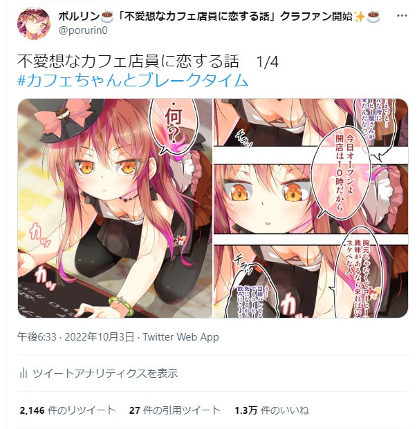 また、こちらの派生元のマンガ「カフェちゃんとブレークタイム」も
