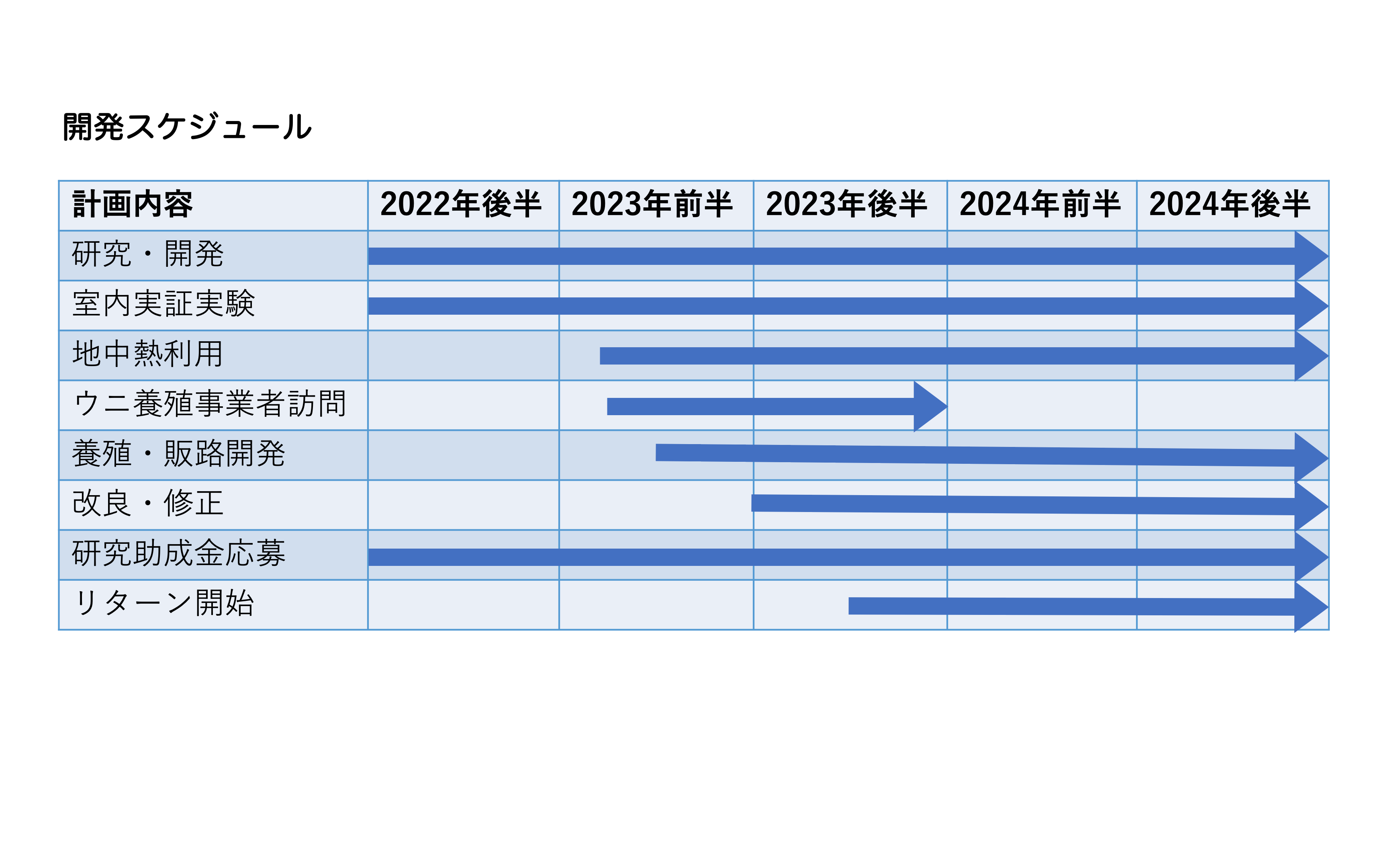 開発スケジュールは、下表に示しています。