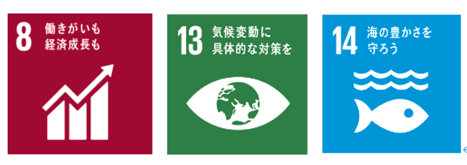 今回のクラウドファンディングは、ウニの食餌開発のプロジェクトですが、我々は別に海藻そのものの養殖活動も行っていますので、水産関係者の経済発展(SDGs8,14)と連携します。駆除されるウニを養殖することは、日本の水産業の発展ばかりでなく、二酸化炭素を吸収・保持する海藻を増やす取組(SDGs13,14)になりますので、グローバル規模の地球環境保全に寄与できるというものです。皆さん、美味しいウニを食べて地球温暖化対策に貢献しましょう。そして、ウニと海藻が共存できる海をつくりましょう。